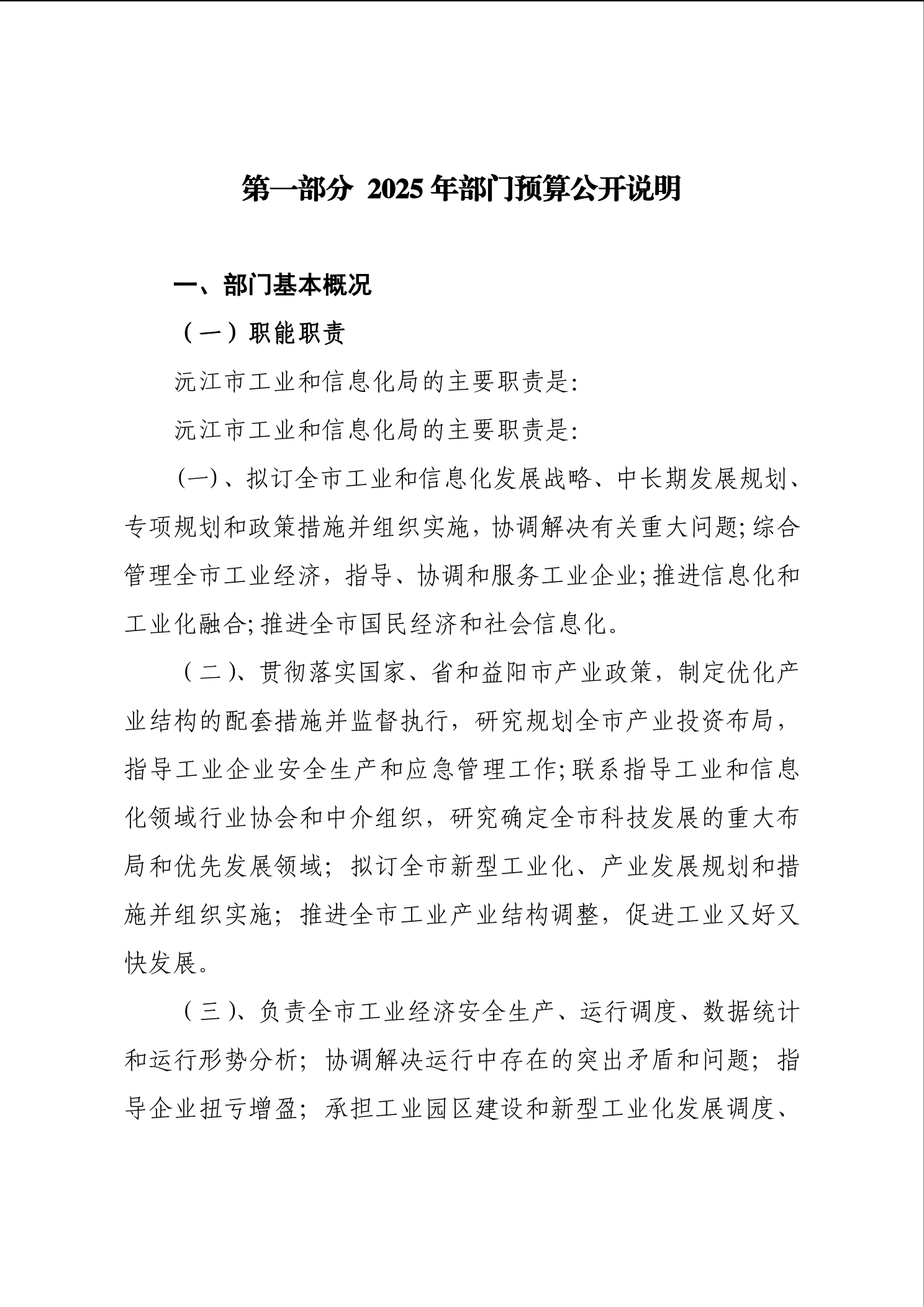 2025年沅江市科学技术和工业信息化局部门预算公开