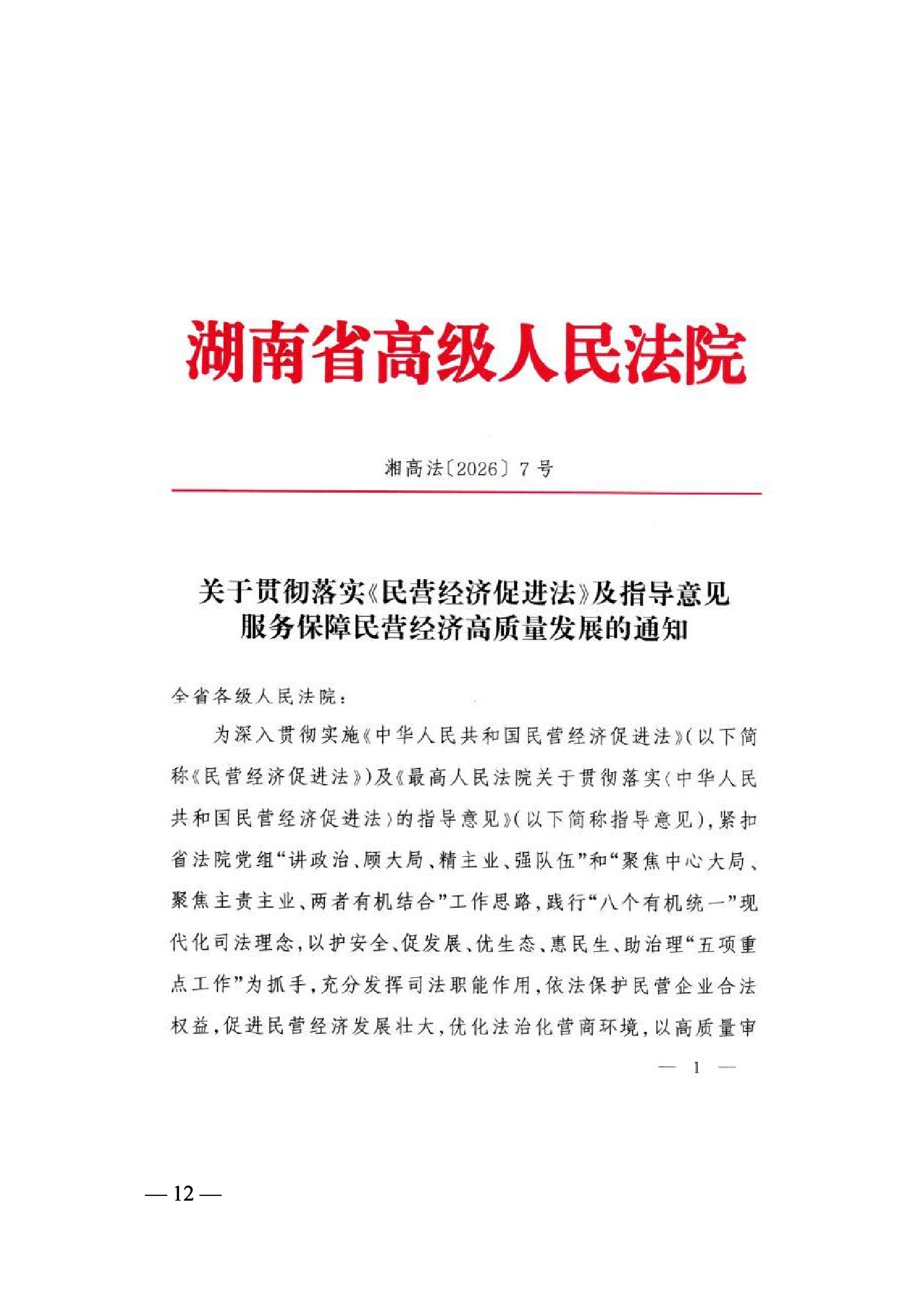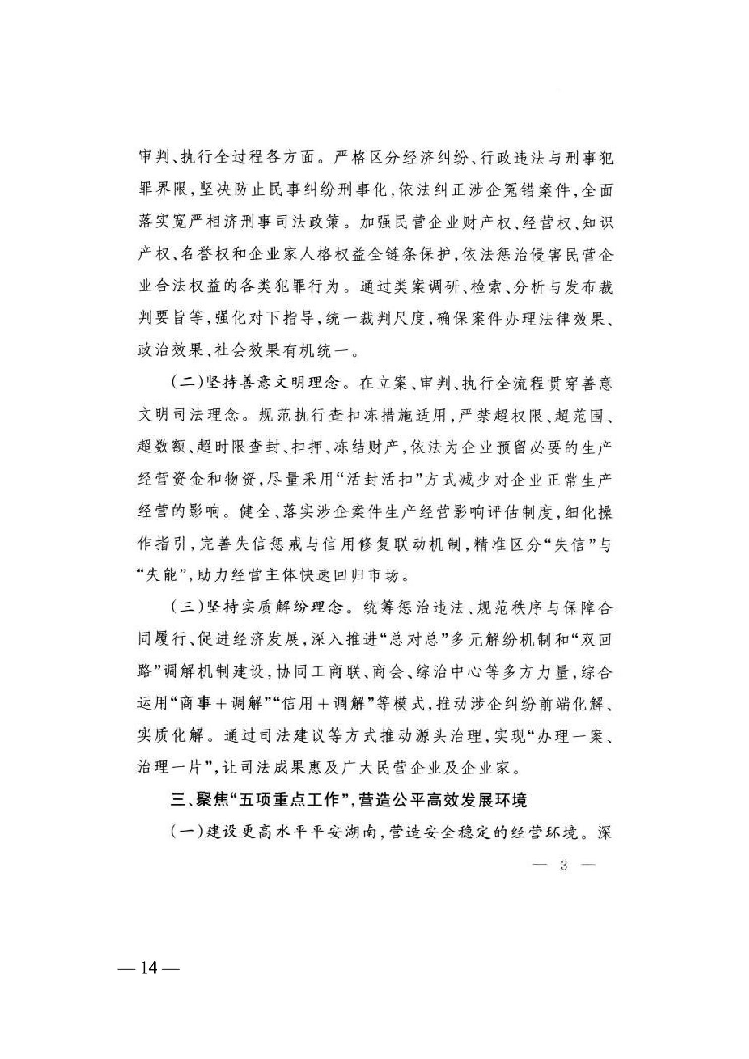 3、湖南省高级人民法院关于贯彻落实《民营经济促进法》及指导意见服务保障民营经济高质量发展的通知 22