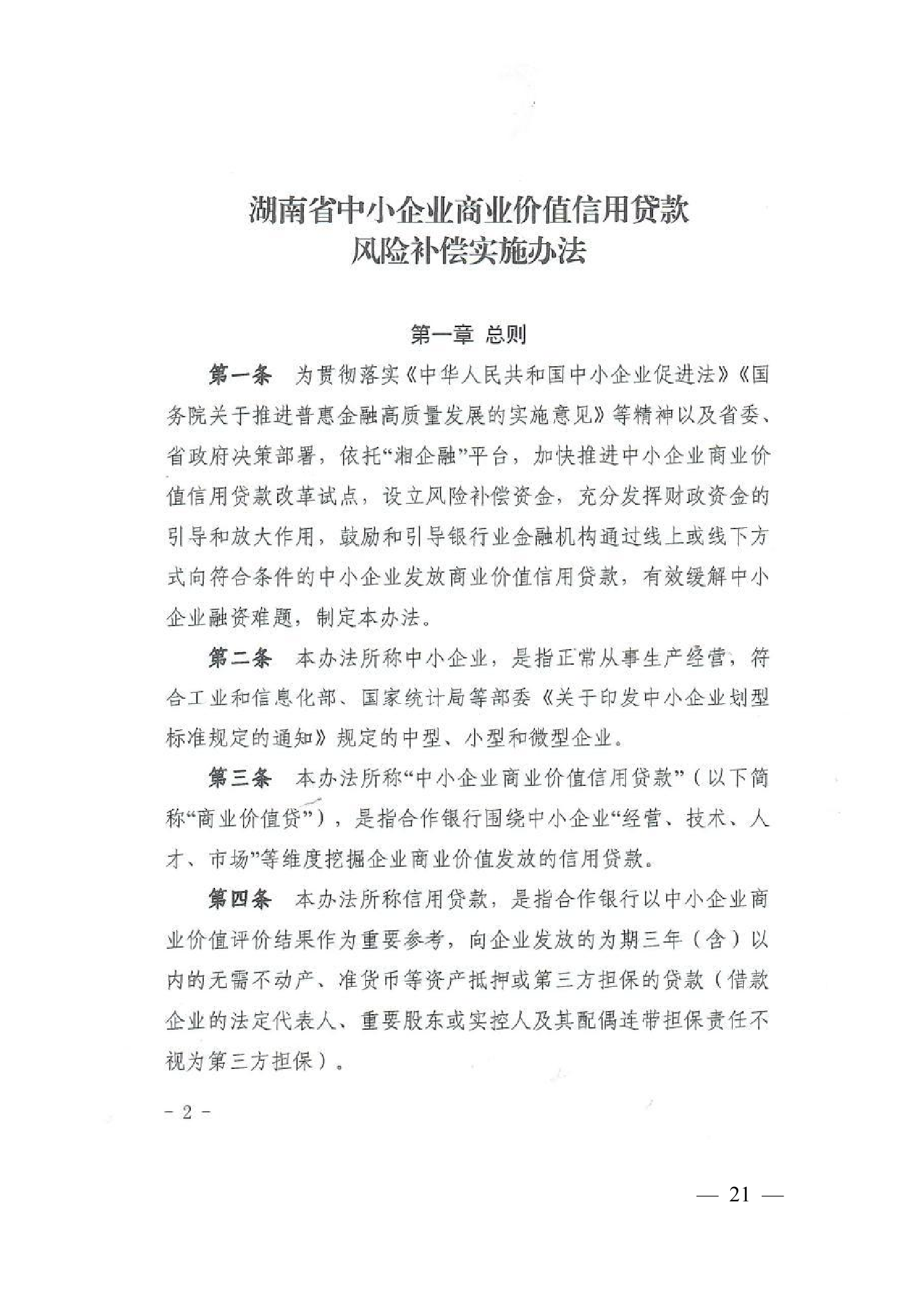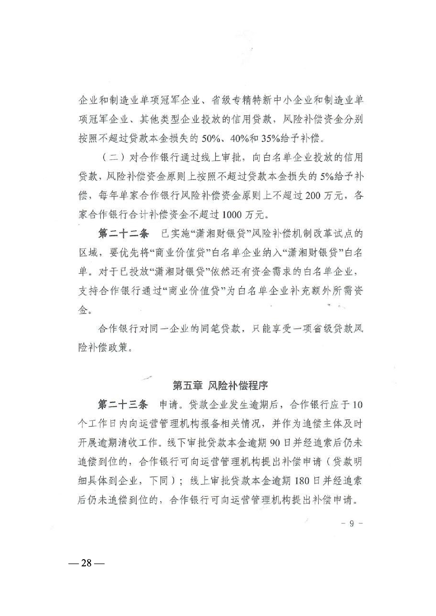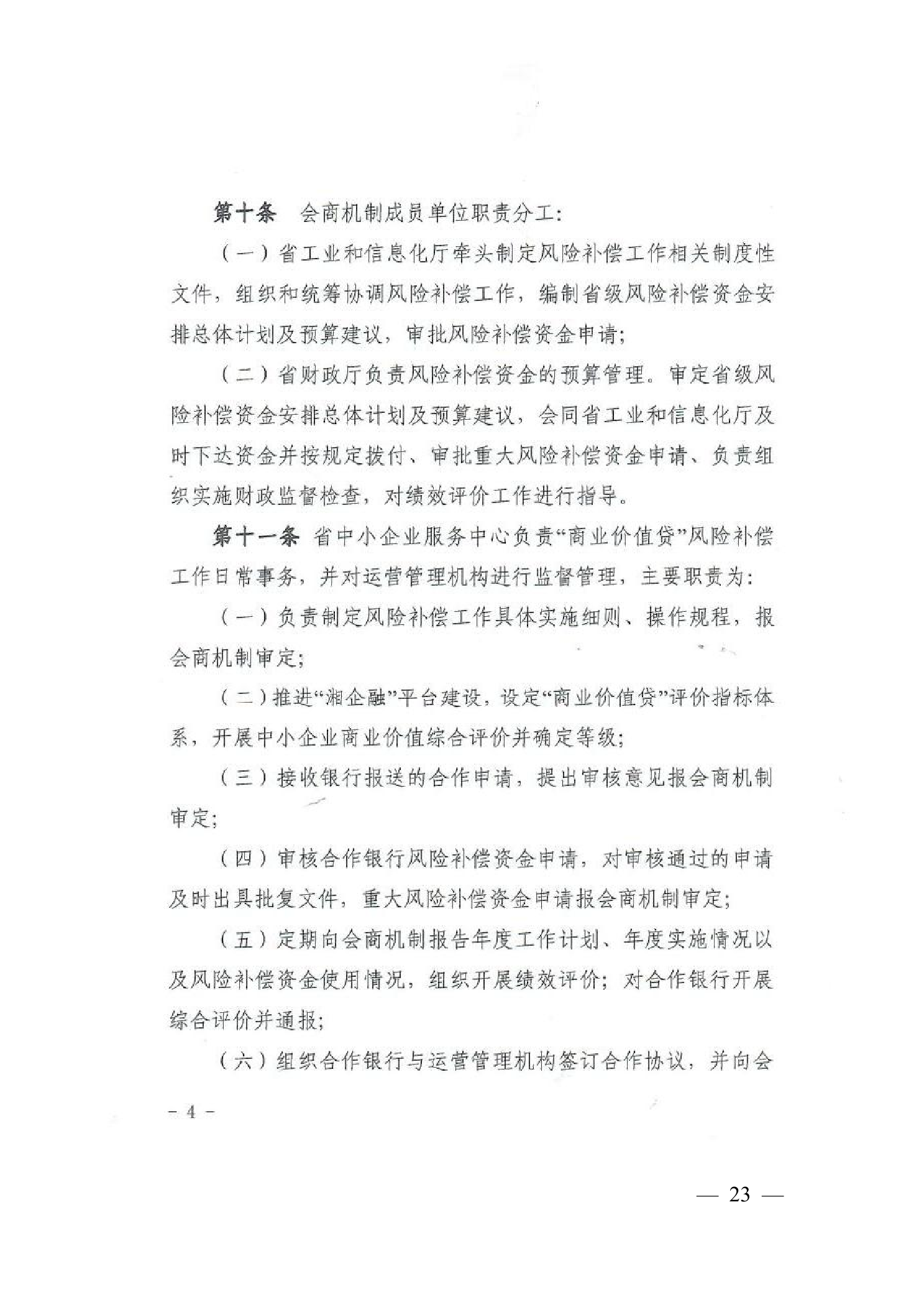 4、湖南省工业和信息化厅 湖南省财政厅关于印发《湖南省中小企业商业价值信用贷款风险补偿实施办法》的通知 30