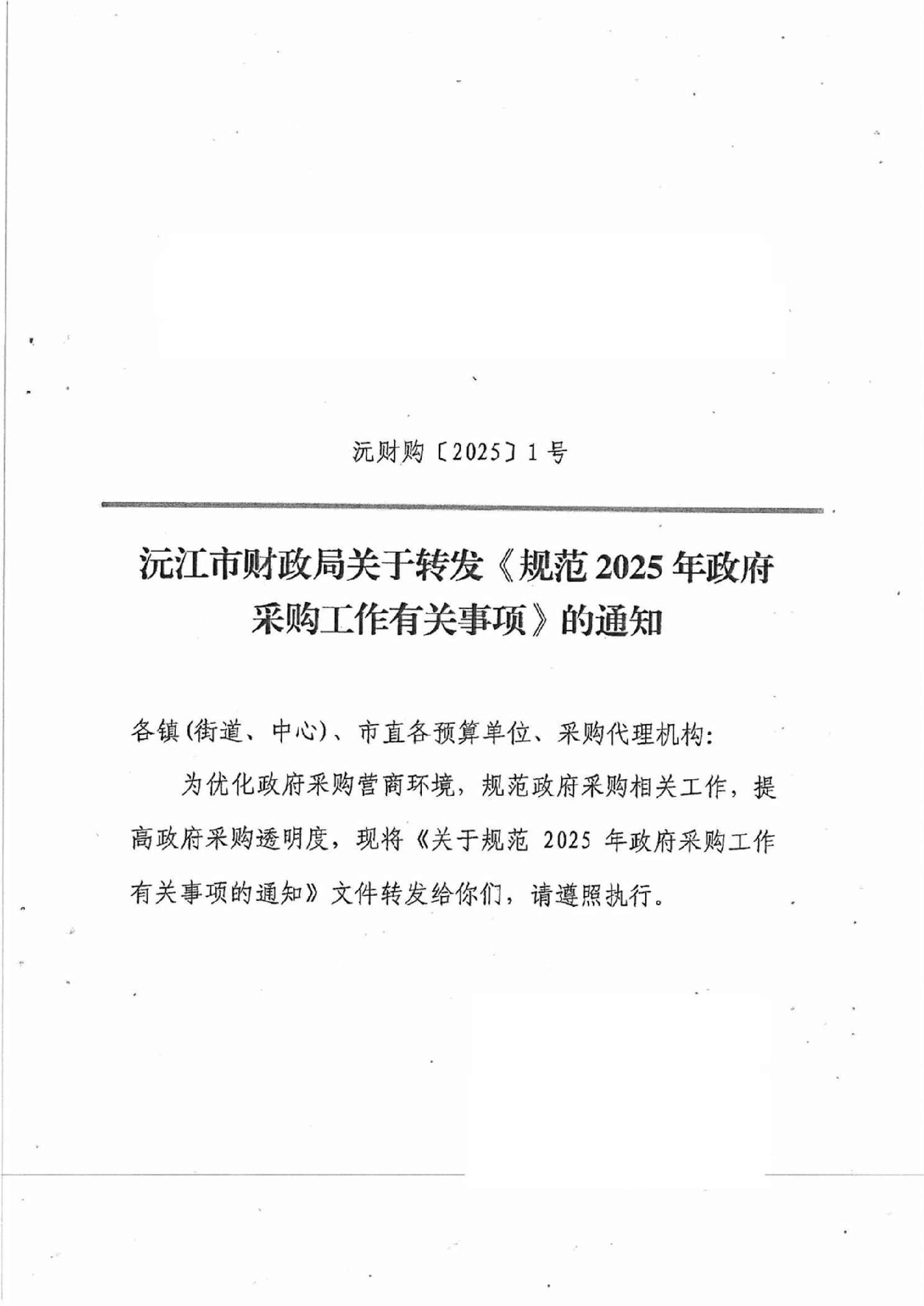 转:沅江市财政局关于转发《规范2025年政府 采购工作有关事项》的通知