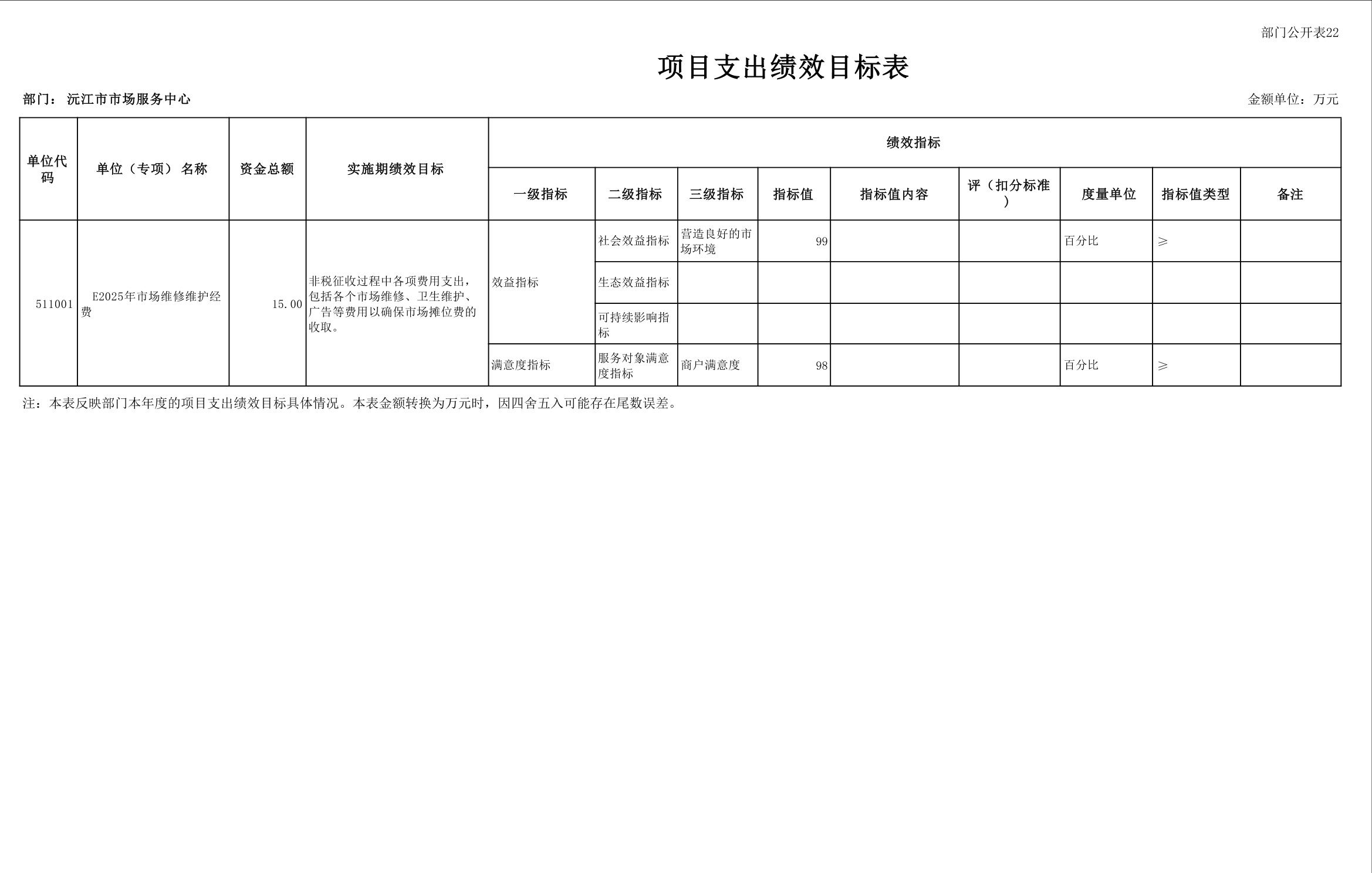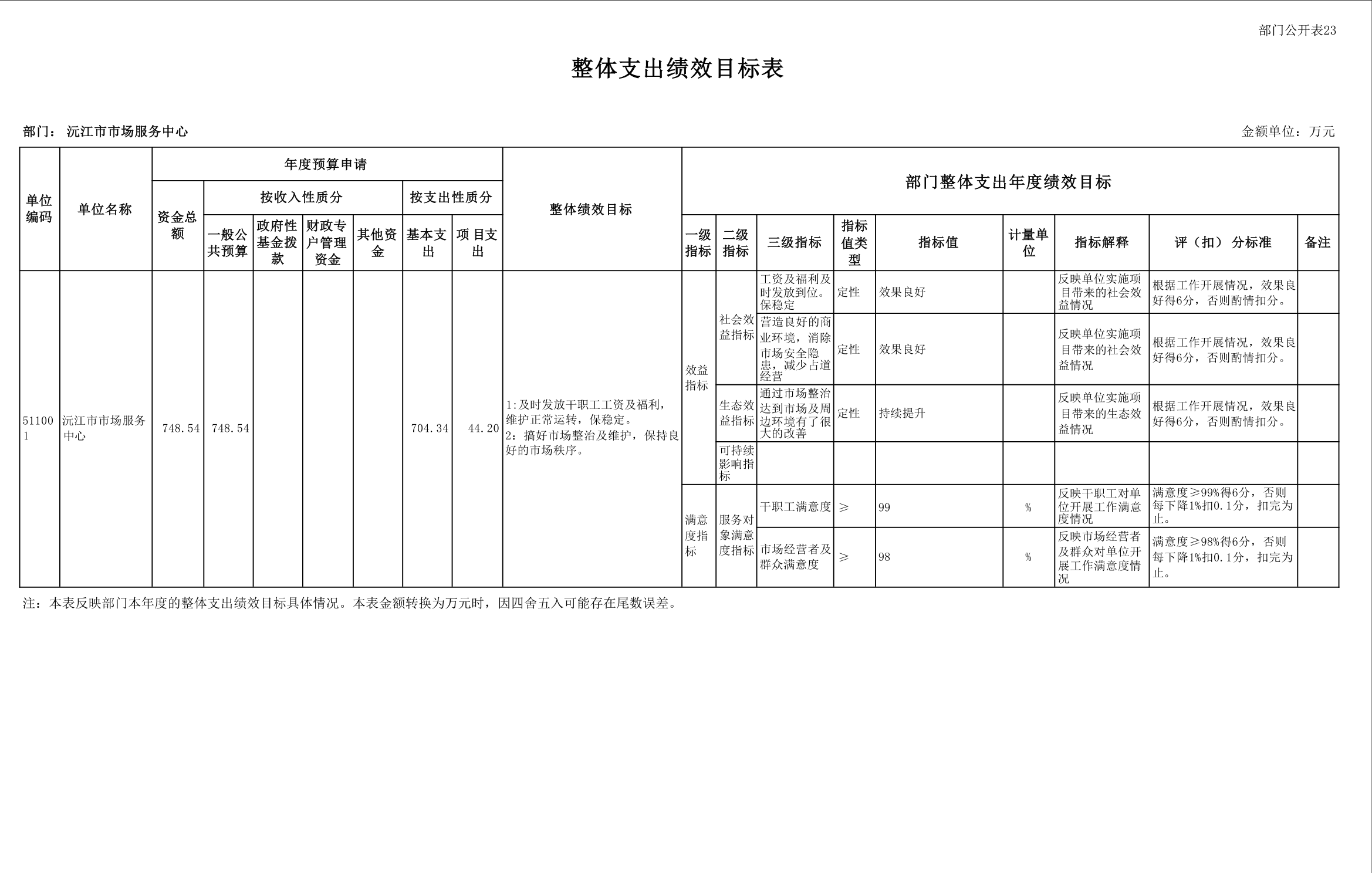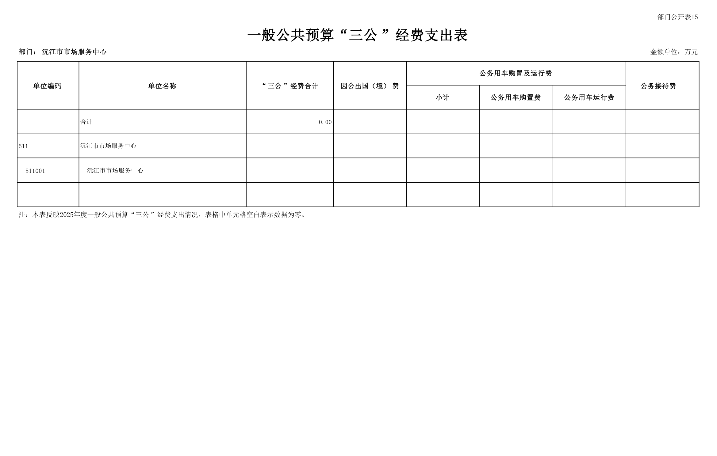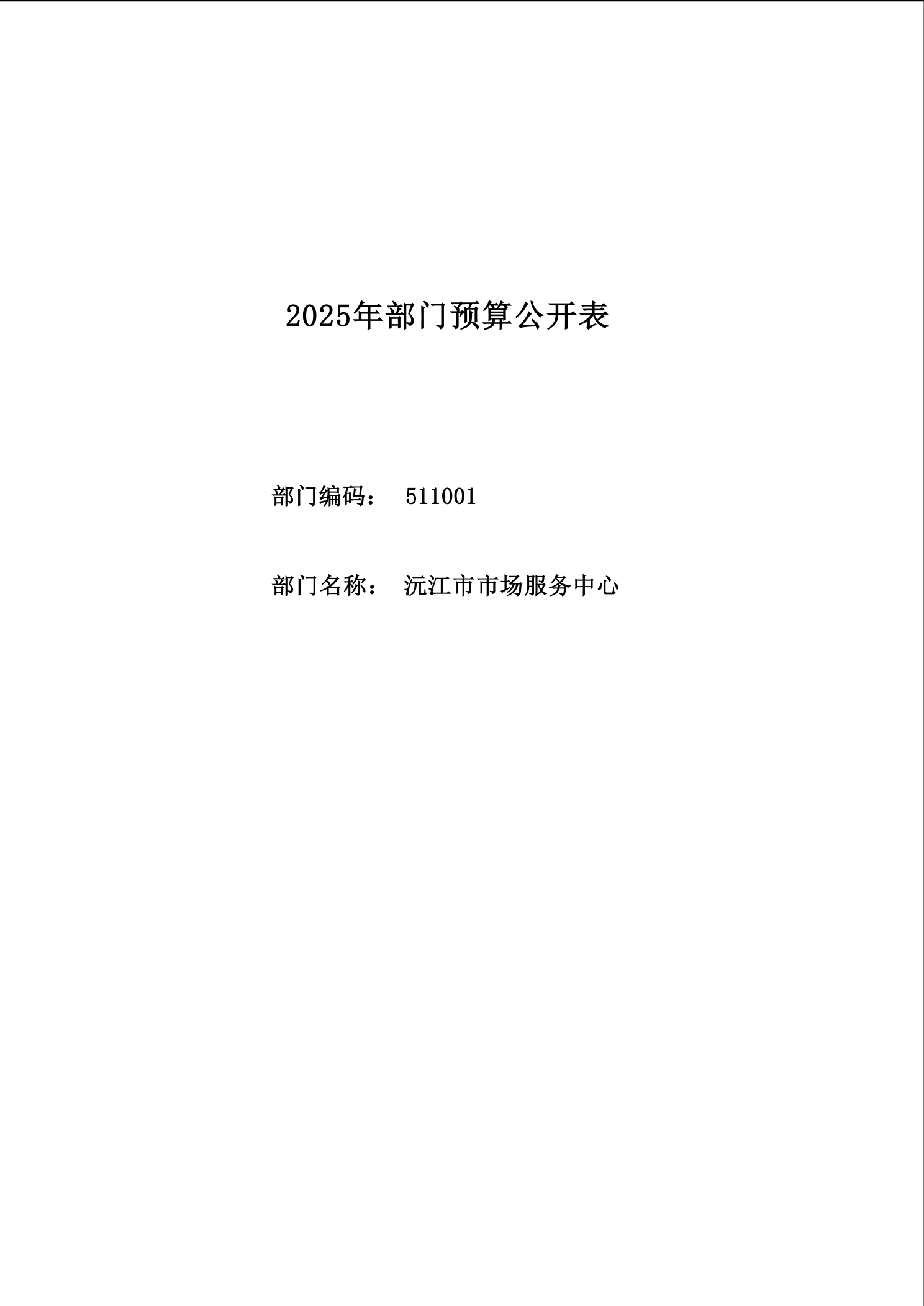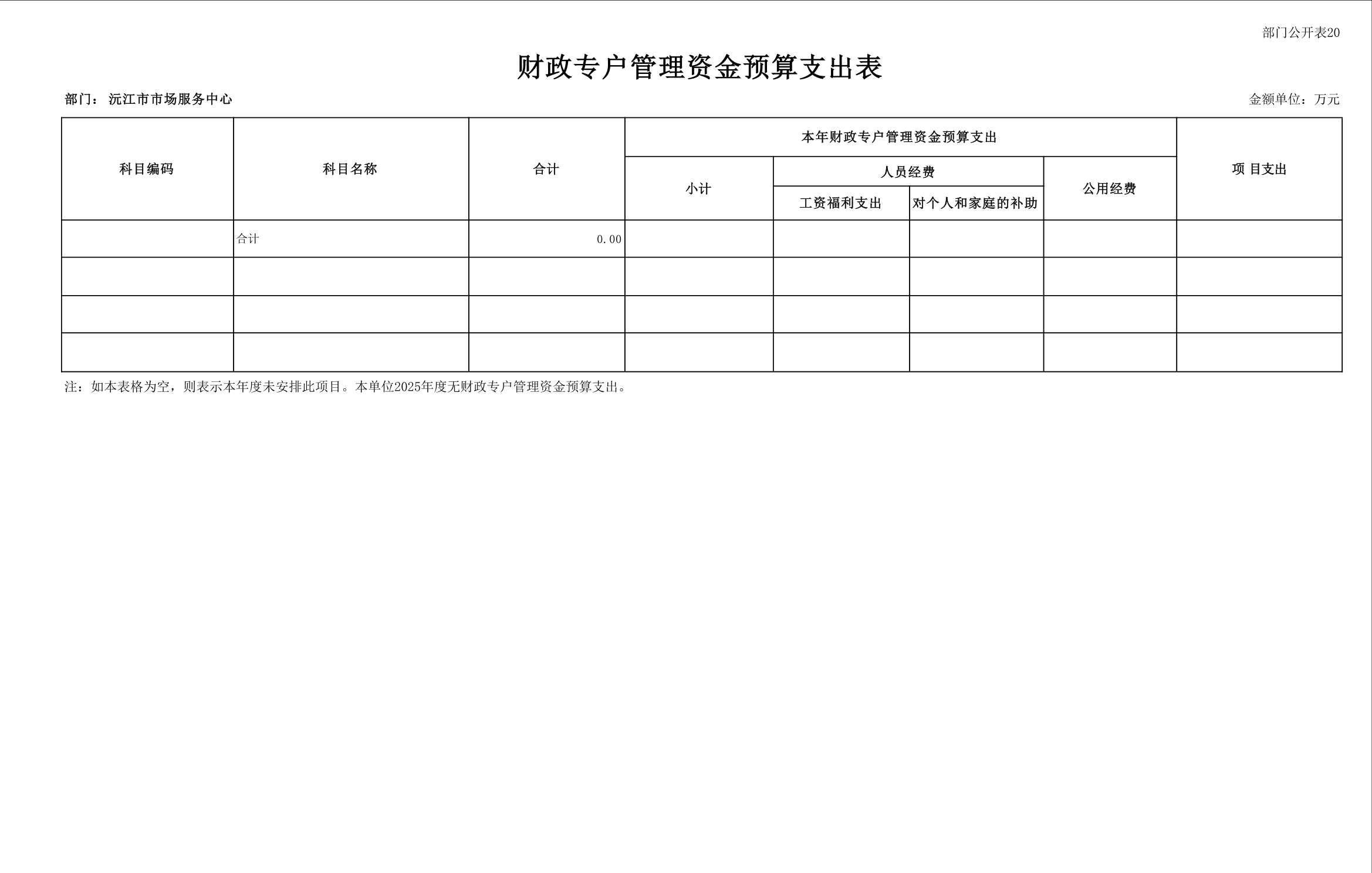 2025 年沅江市市场服务中心部门预算公开