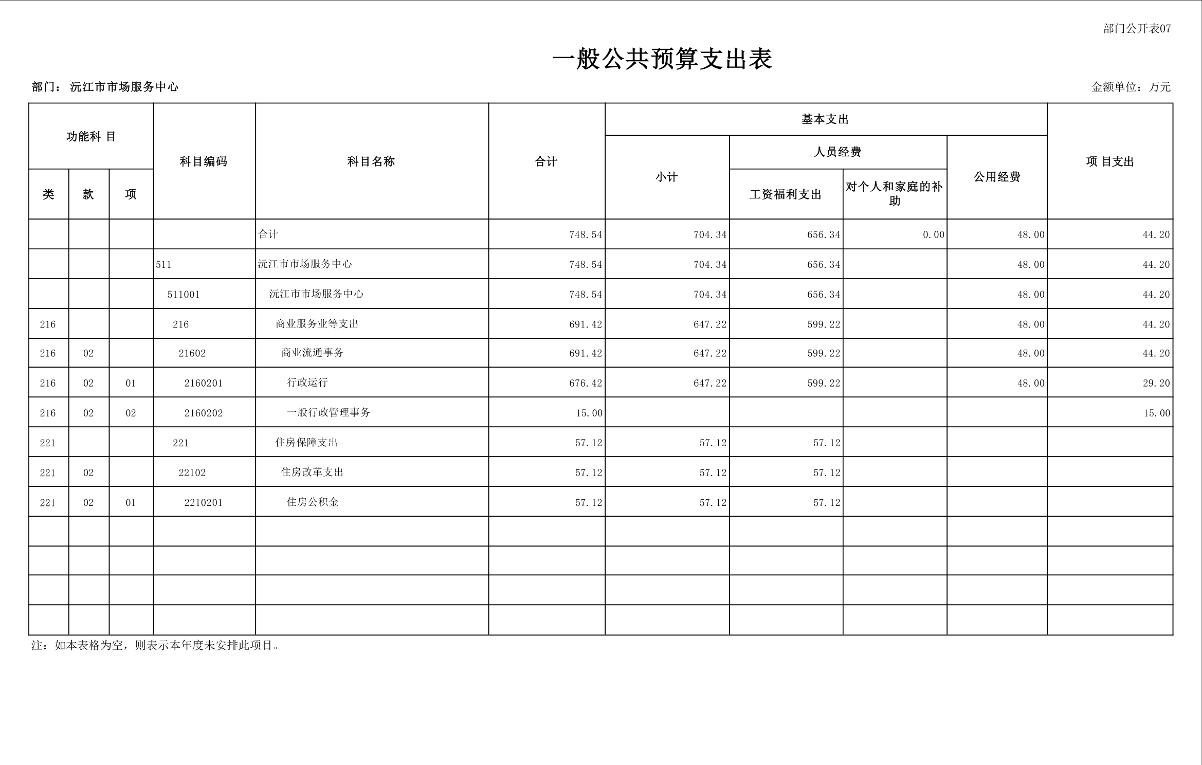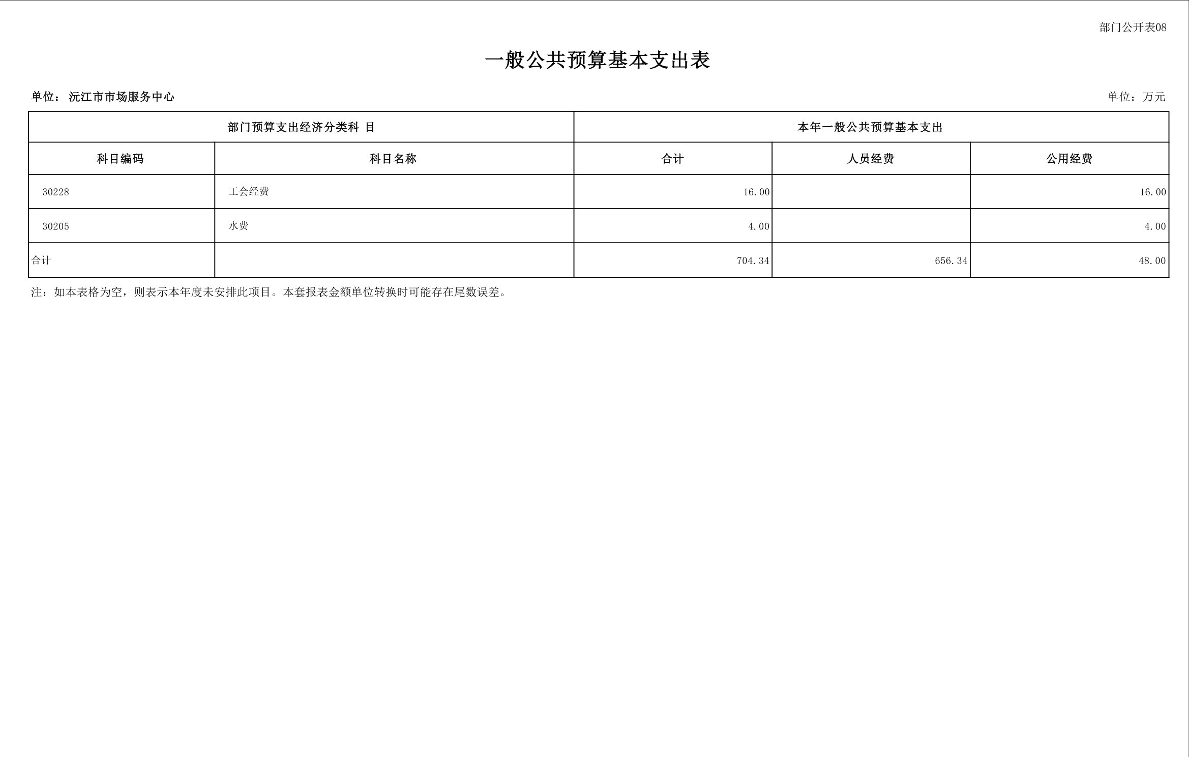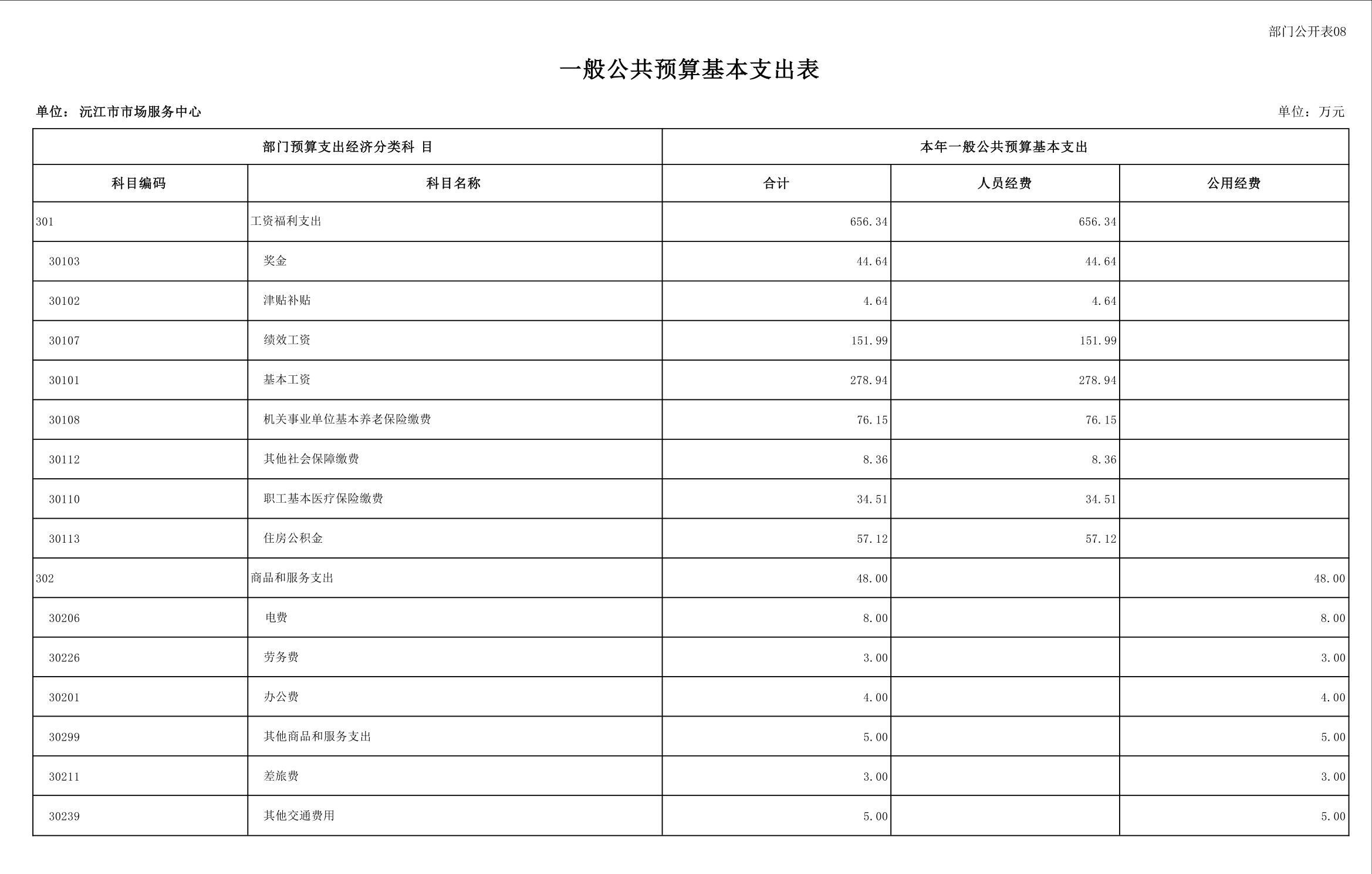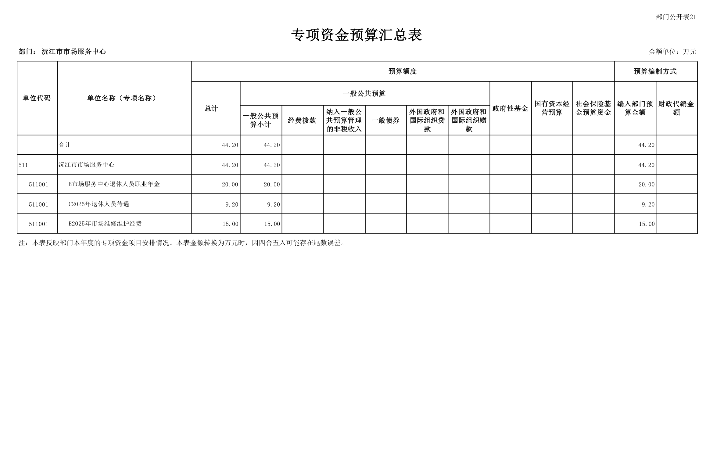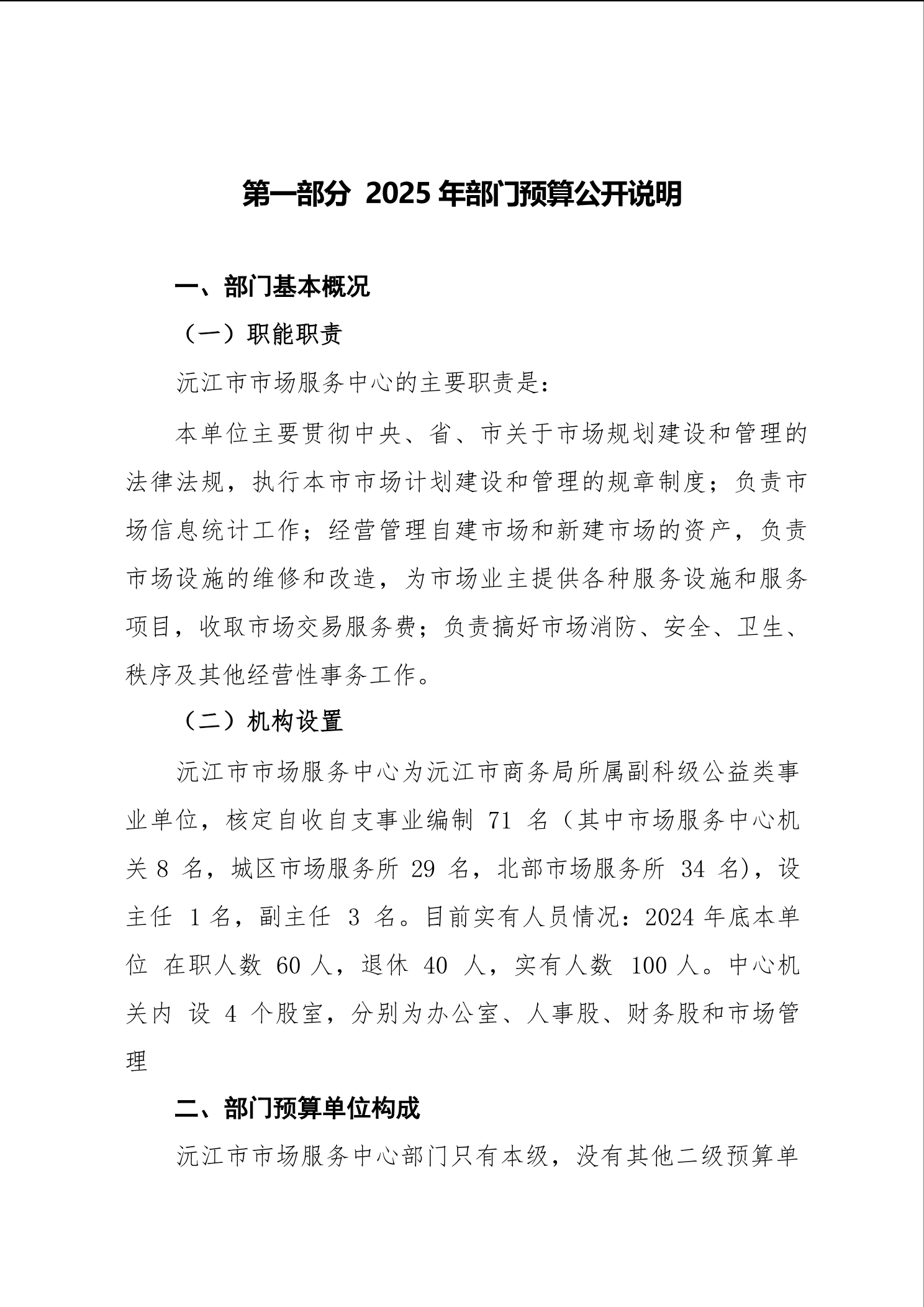 2025 年沅江市市场服务中心部门预算公开