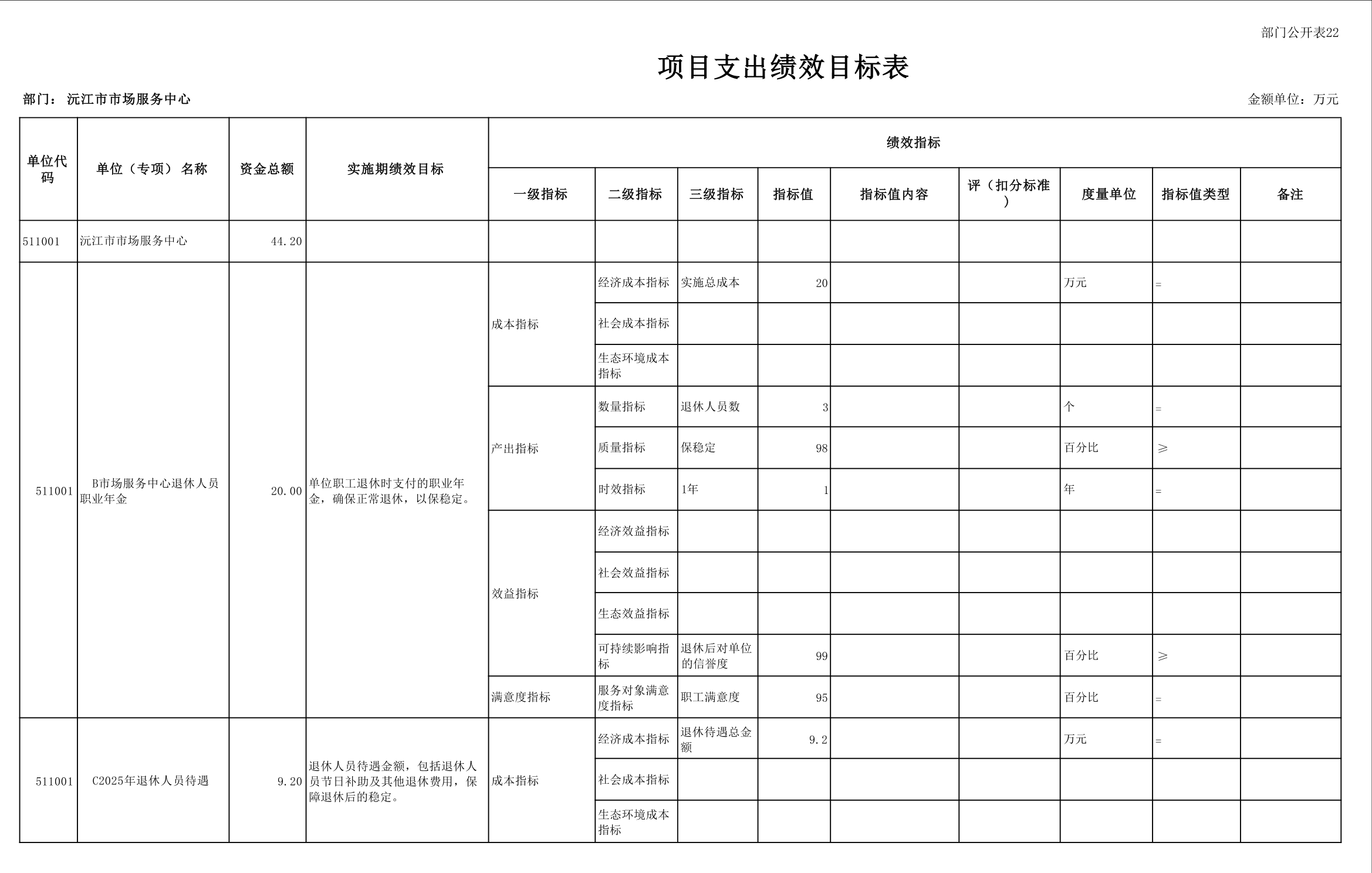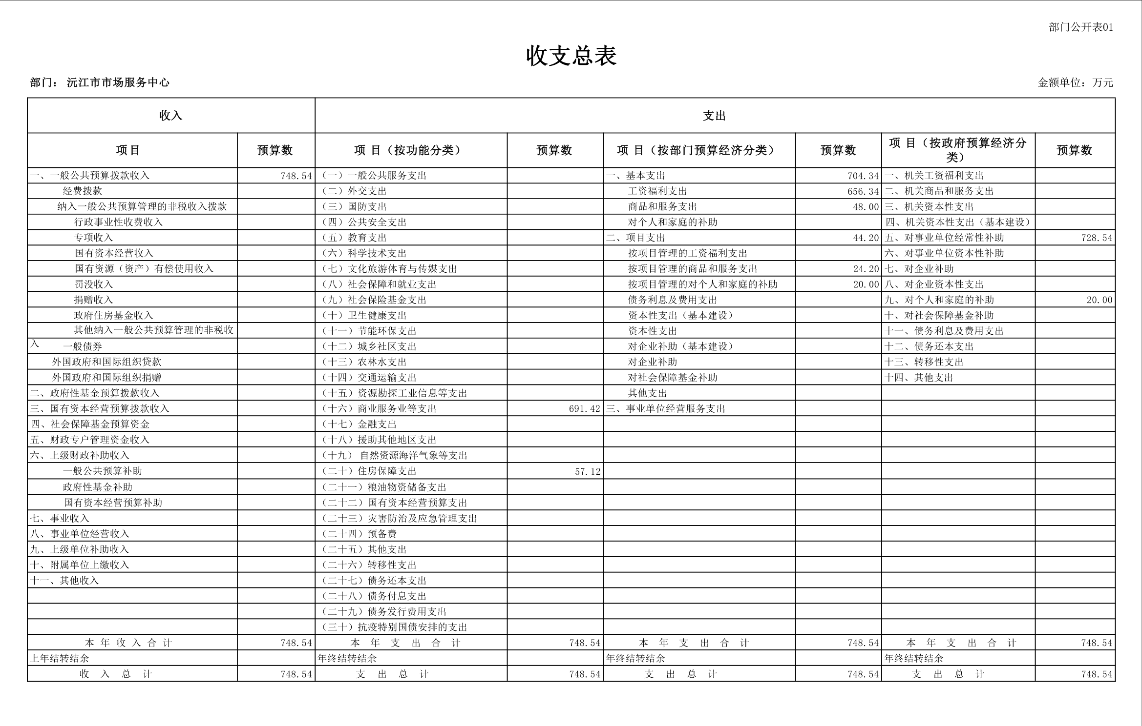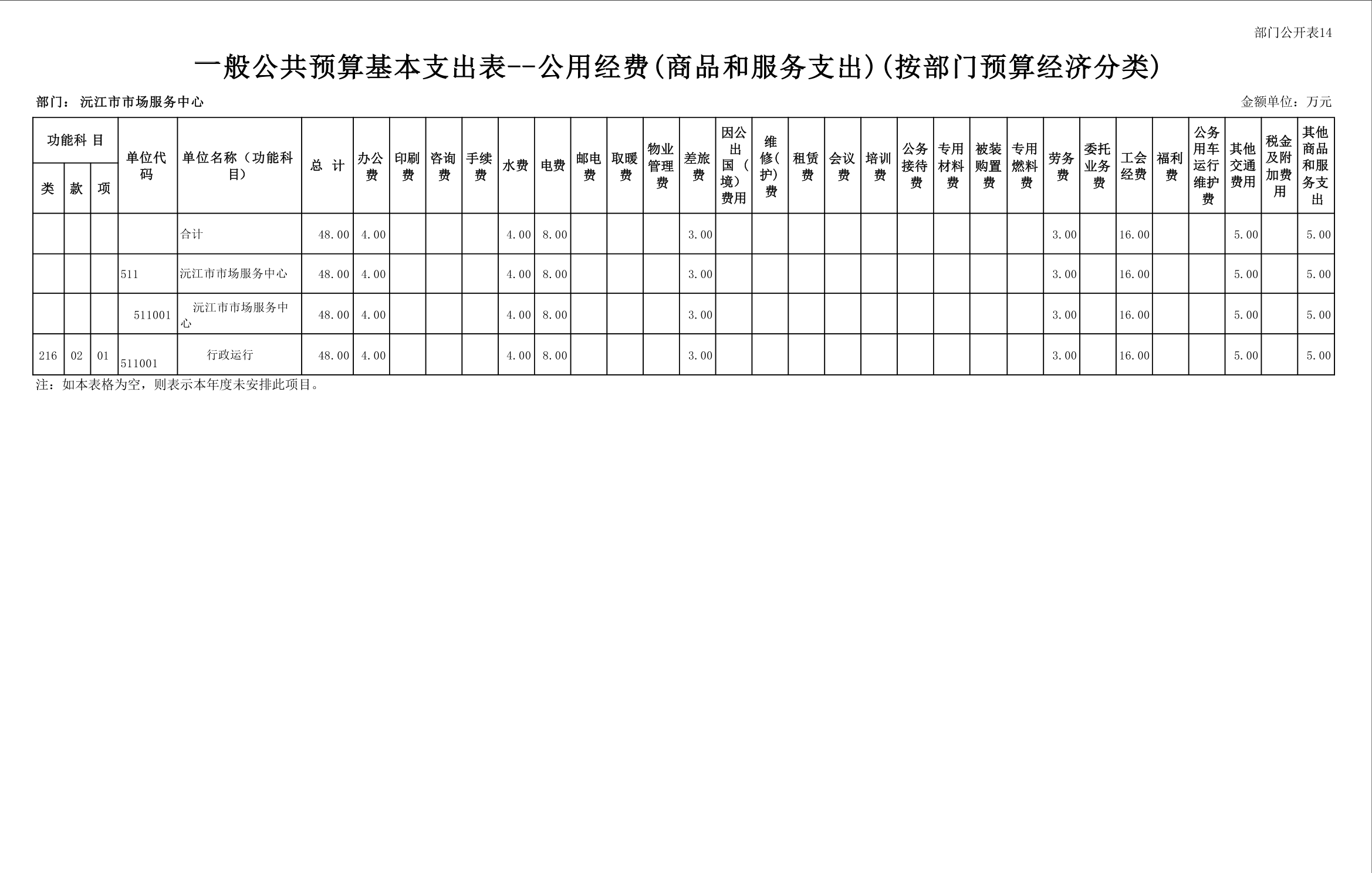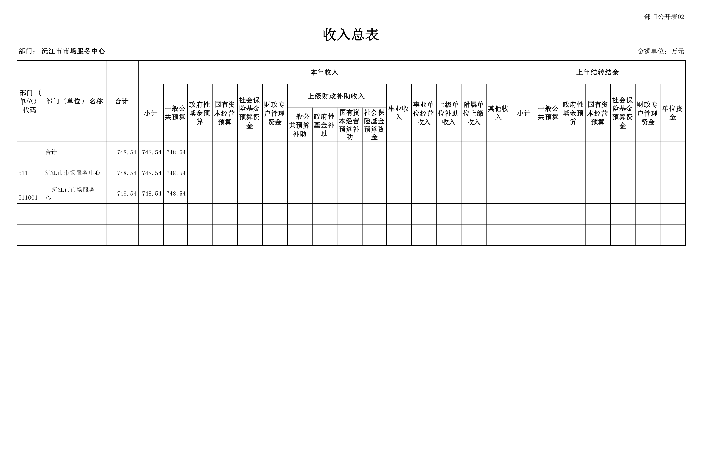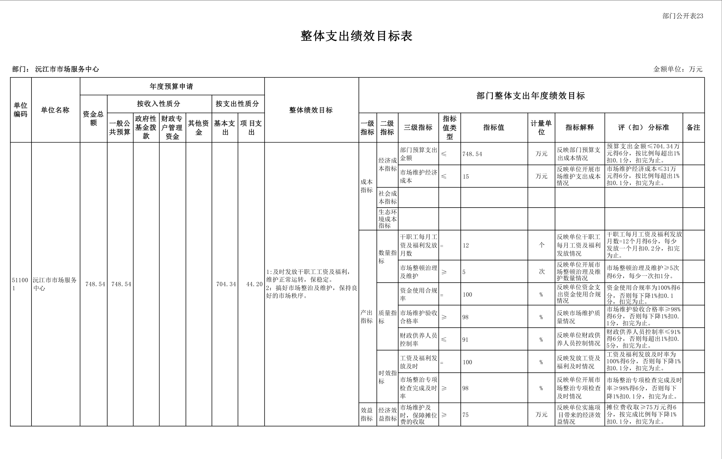 2025 年沅江市市场服务中心部门预算公开