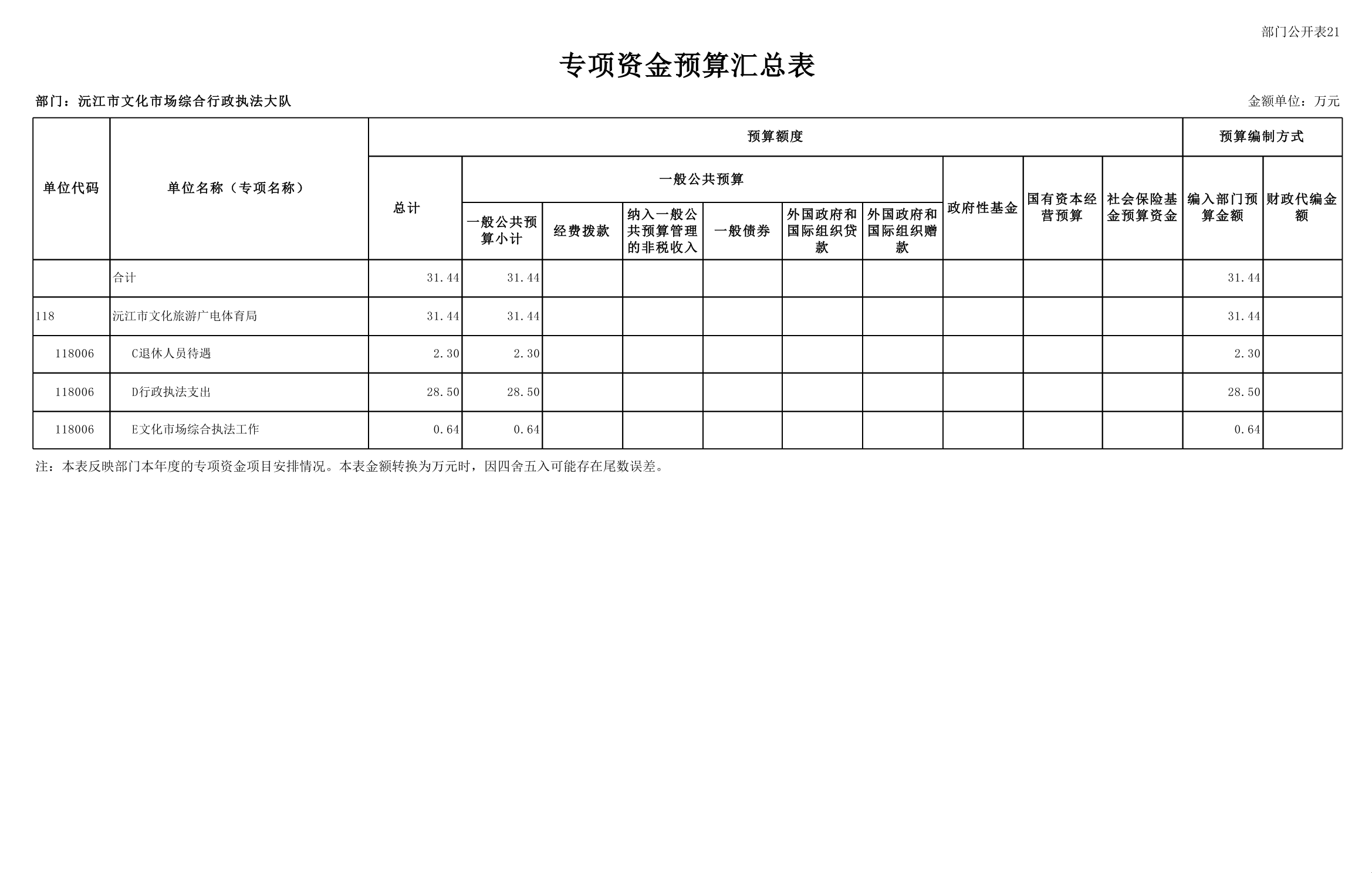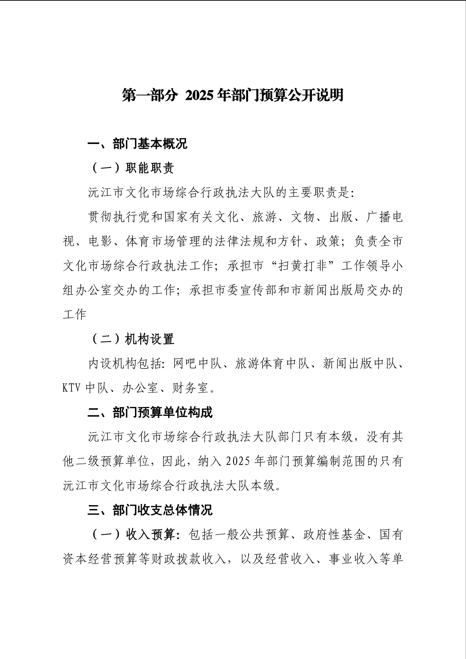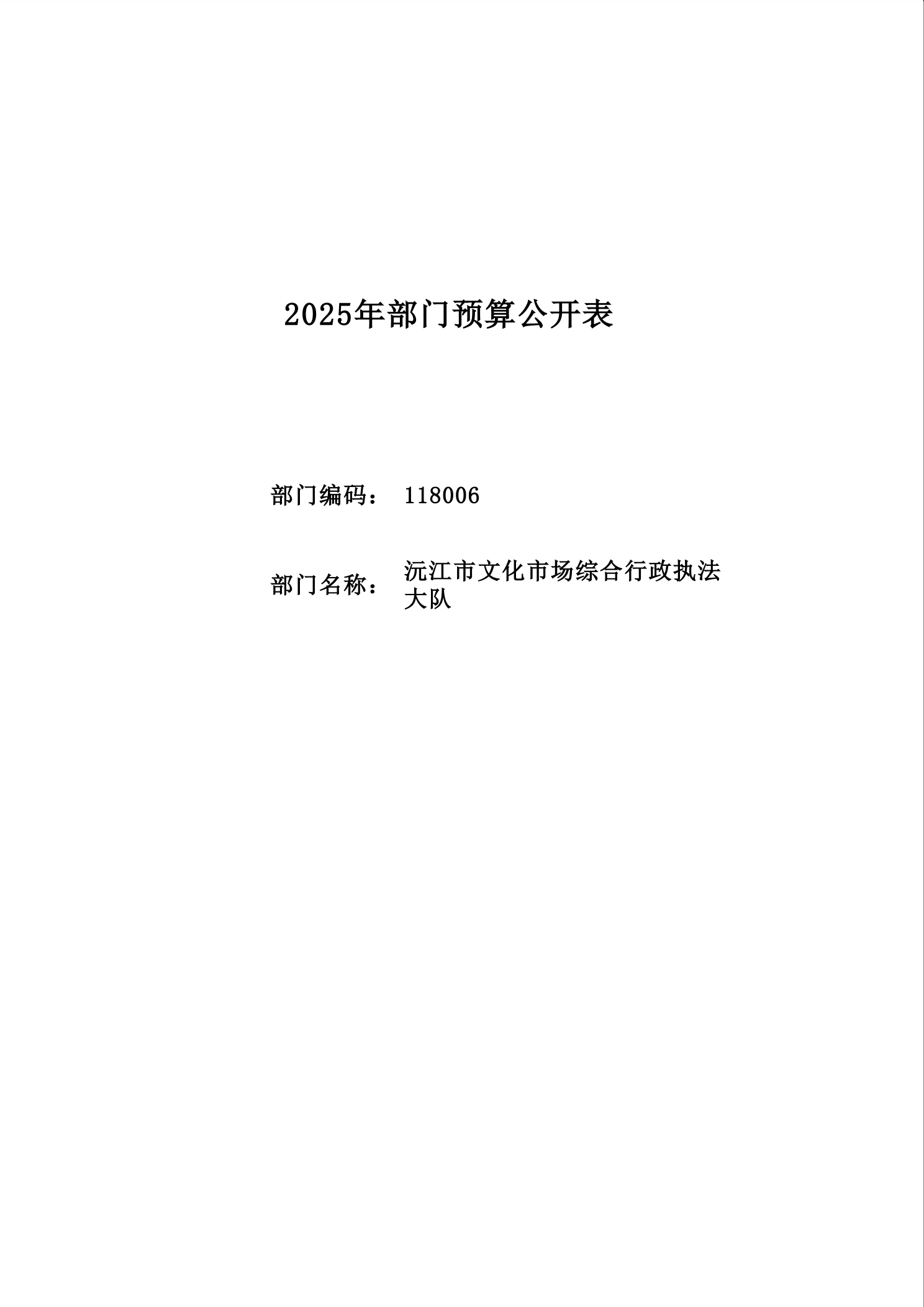 2025年沅江市文化市场综合行政执法大队部门预算公开
