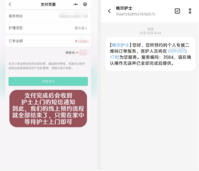 步骤四:支付成功后,等待护士接单评估,医院护士将按约定时间提供相应护理服务。