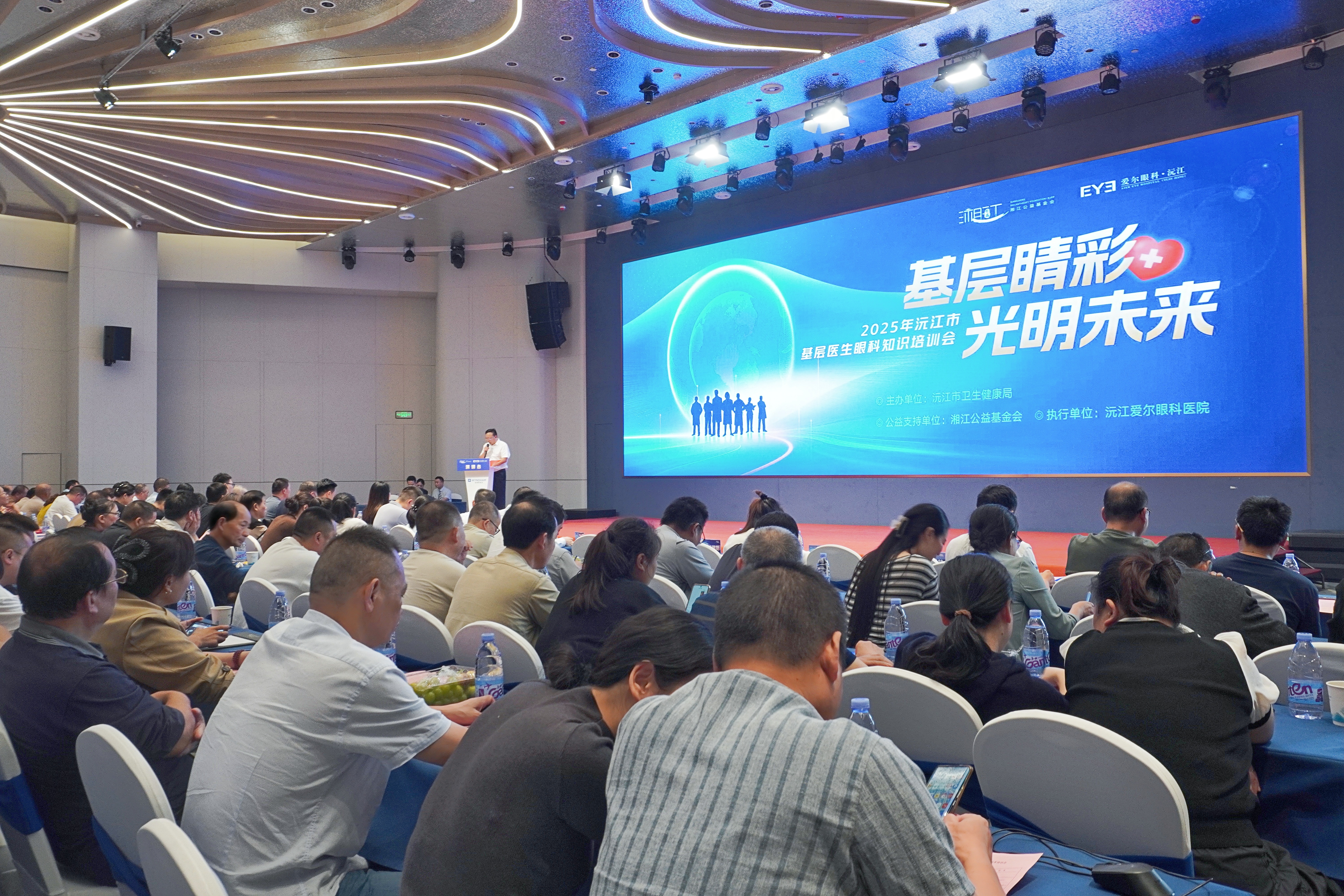 为深入贯彻落实健康中国战略,推动基层眼健康服务能力提升。9月27日下午,沅江市“基层睛彩 光明未来”基层医生眼科诊疗技术培训会议在辉达温德姆酒店召开。会议由沅江爱尔眼科医院院长宋武主持,并特邀益阳爱尔眼科医院五大学科专家担任授课讲师,来自全市各医疗卫生单位、村(社区)近200多名基层医生代表参加培训学习。市卫生健康局医政医管股股长聂固良、爱尔眼科集团湘赣新区全眼病管理中心总监胡坚、爱尔眼科益阳地区CEO邓成建、沅江爱尔眼科医院CEO文芳等共同出席会议并致辞。