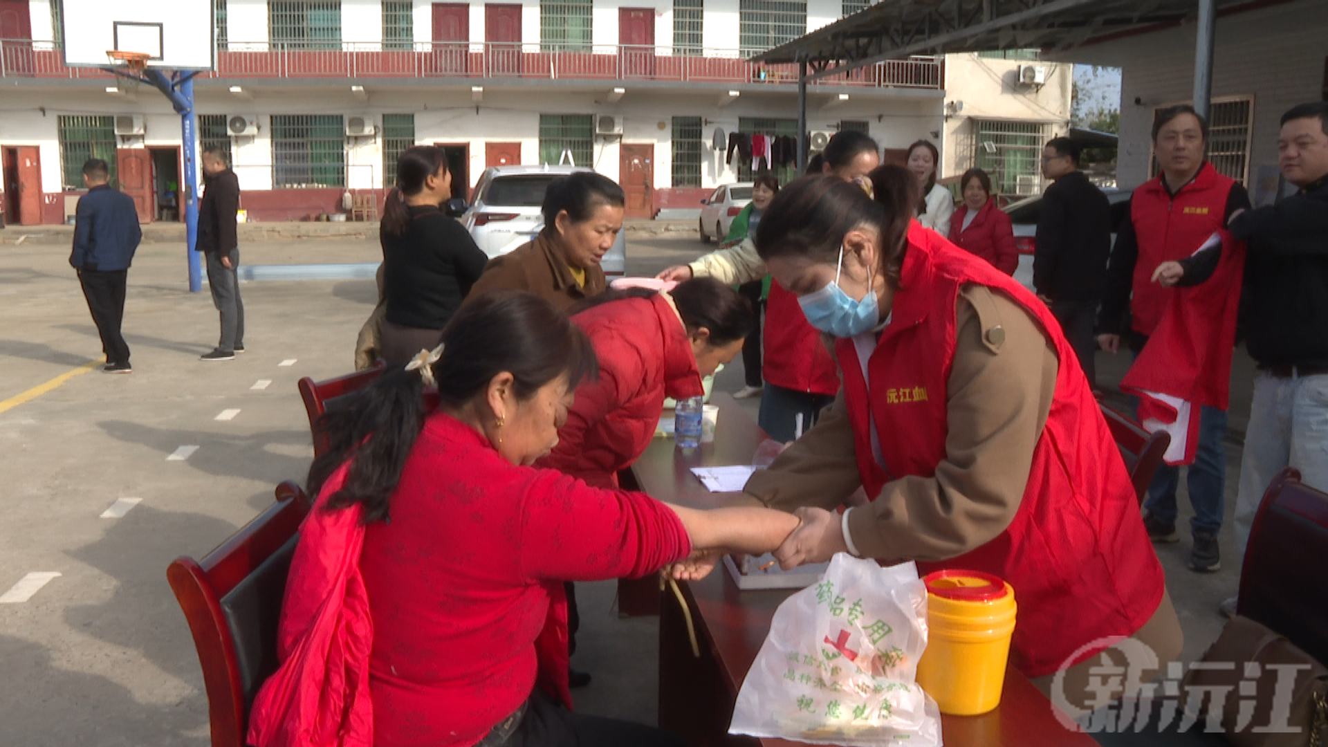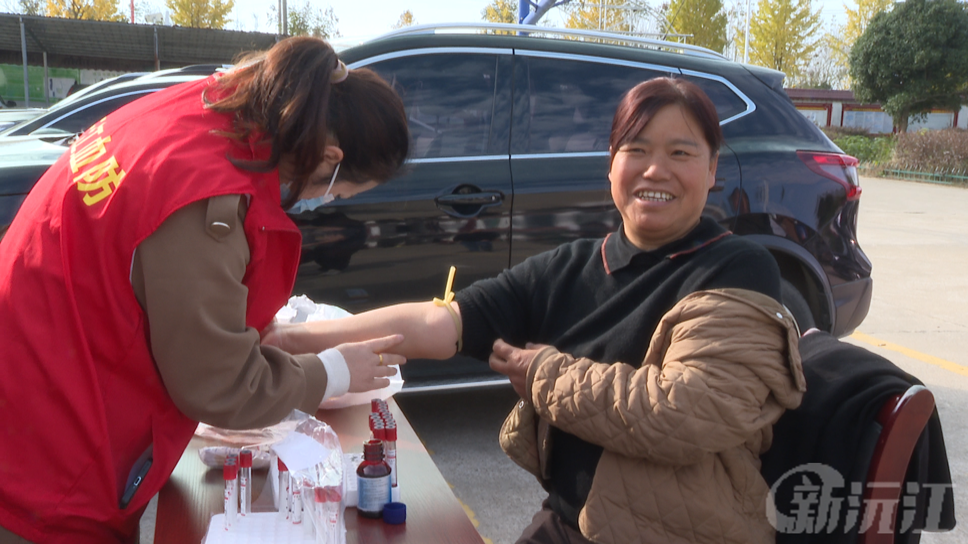 在目平湖南村村部,村民们携带身份证依次登记、领管,等待抽血检查。血防站的工作人员有的引导村民排队、讲解注意事项,有的仔细核对信息、规范采集血样,有的则在一旁的咨询台发放防控宣传手册,现场秩序井然又充满暖意。