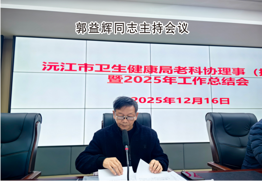 2025年12月16日,沅江市卫健局老科协第五届三次理事(扩大)暨2025年年终总结大会在城区召开,所有局老科协理事、基层老科协会长、荣誉会长、优秀会员代表50多人参加。会议由局老科协副会长郭益辉同志主持,会长曾立新同志作工作报告,局机关党委副书记阳君同志宣读局表彰办决定给8个先进单位、10名优秀会长、20名优秀会员、11名重视和支持老科协工作的先进个人颁发荣誉证书。