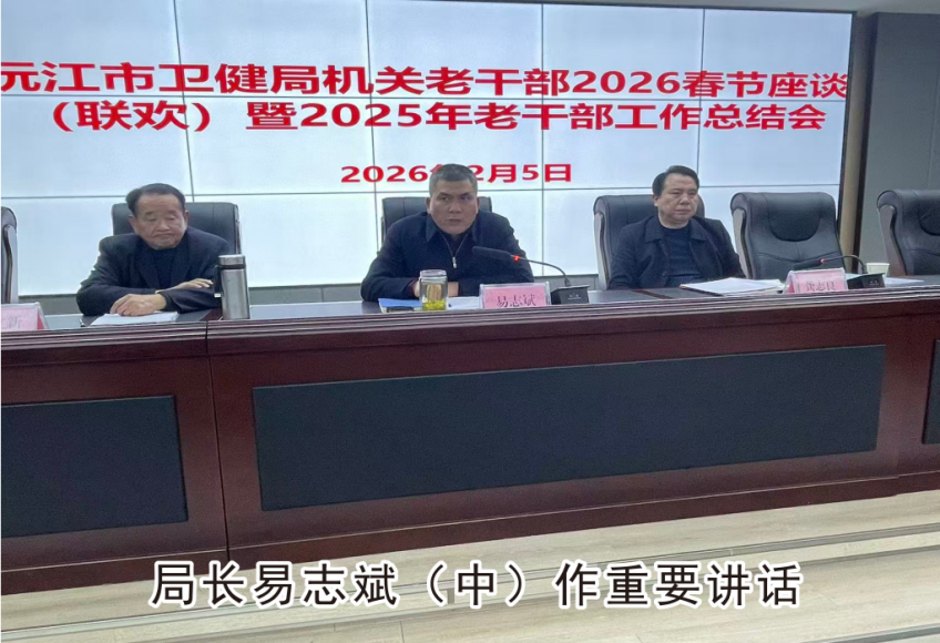 2月5日,沅江市卫健局召开2026年机关老干部春节座谈(联欢)暨2025年老干部工作总结会,会议由局党组成员、市计生协常务副会长龚志良同志主持,有80多位老同志参加,会上曾立新同志代表机关退休干部职工党总支委员会作工作报告,局党组成员、副局长李铭同志宣读给全系统退休干部职工的春节慰问信,局长易志斌同志作重要讲话,他首先向机关各位退休老同志致以节日问候和新春祝福,然后通报了近5年来沅江卫生健康事业的发展情况,希望老同志一如既往地关心和支持全市卫健事业的发展,为沅江社会经济腾飞作出新的贡献。