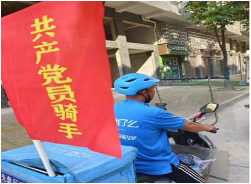 一是争当创建参与者。严格落实行业主体责任制,加强企业内部管理。通过发放《倡议书》引导骑手自觉遵守交通安全法律法规,规范车辆停放,安全文明驾驶,杜绝交通违法。同时明确共产党员佩戴党徽 “亮身份”,党员模范带头,让快递外卖企业成为遵守交通法规的先行者和排头兵,形成“人人遵规守法”的文明交通新风尚。