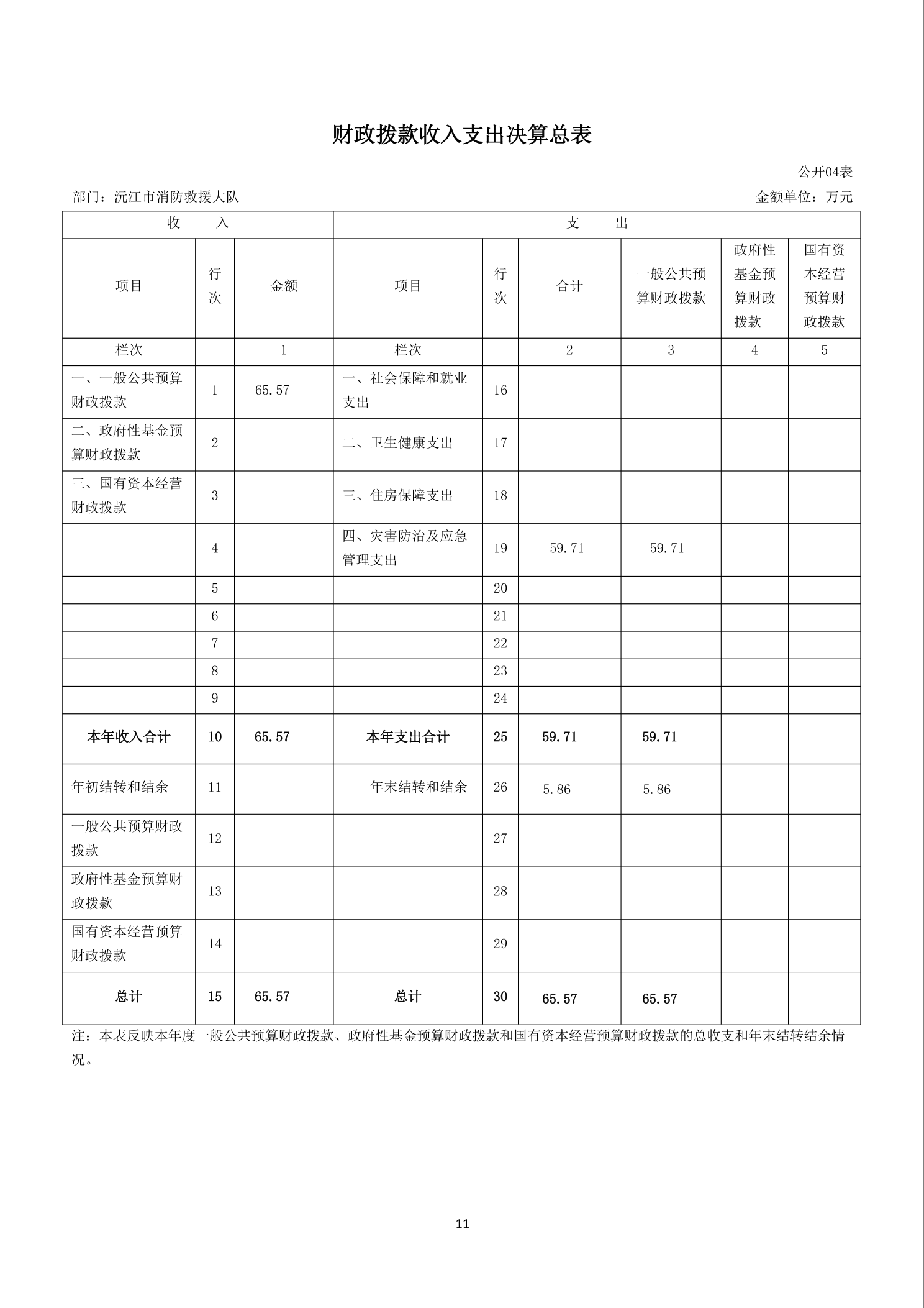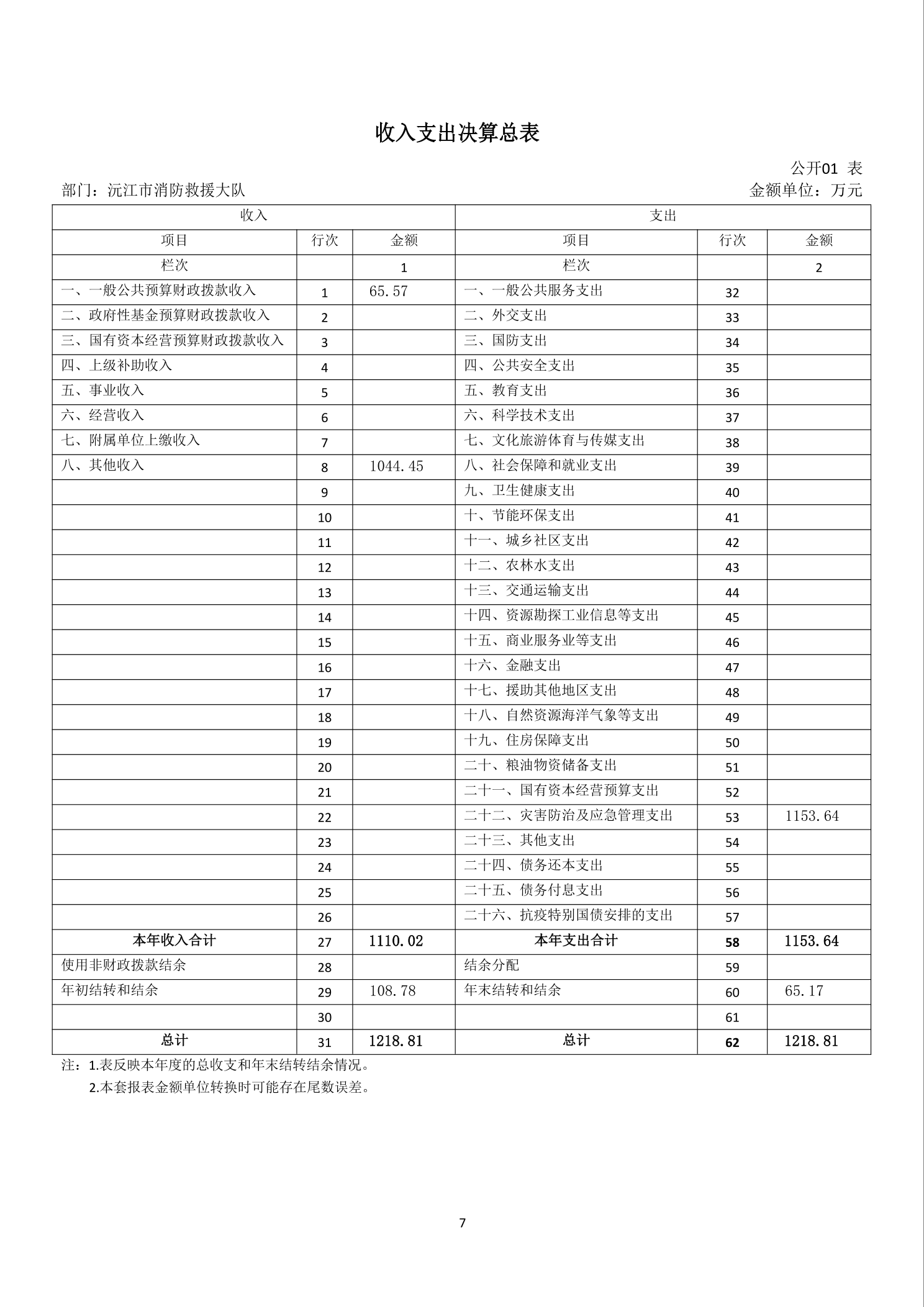 沅江市消防救援大队2024年度决算公开