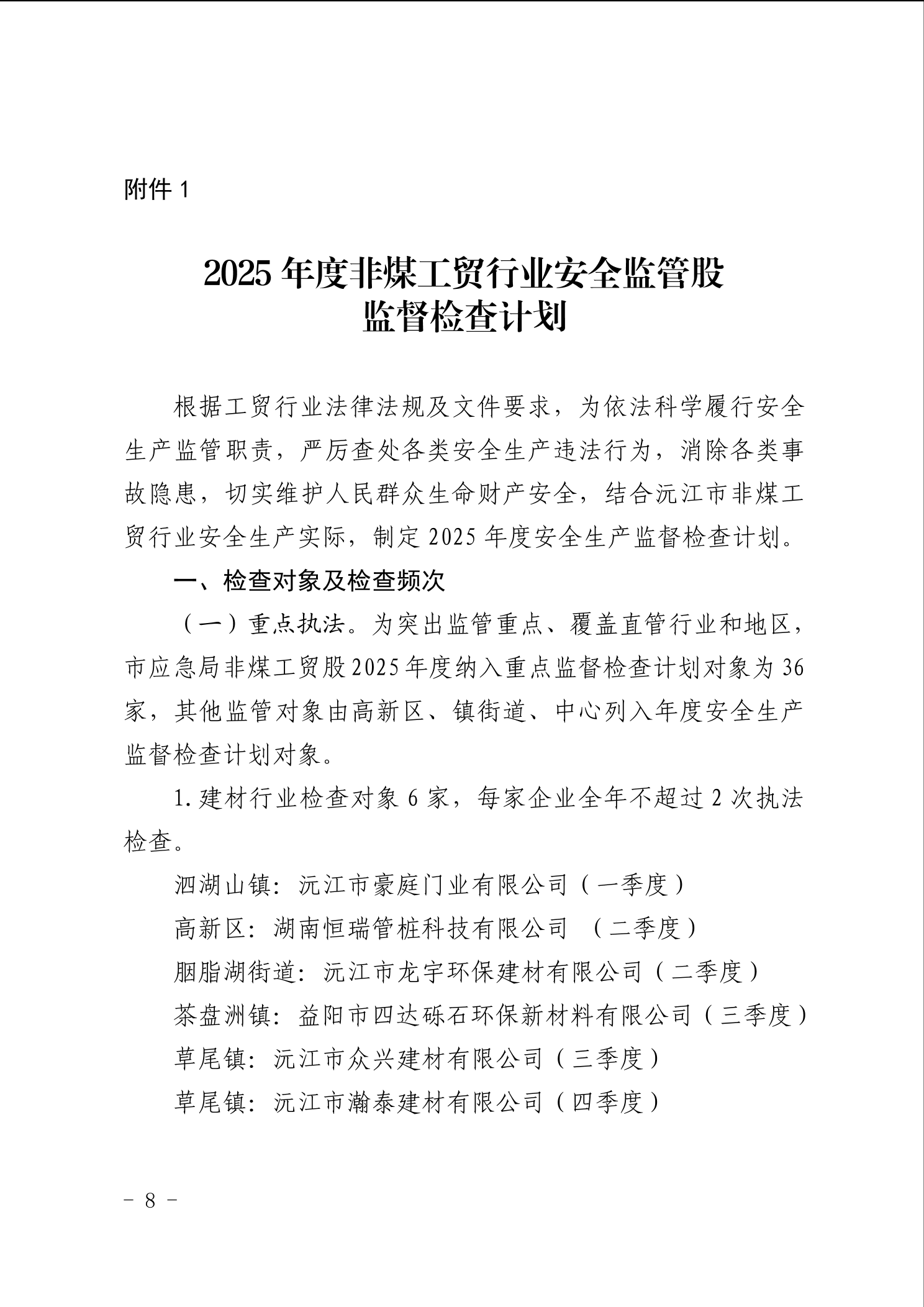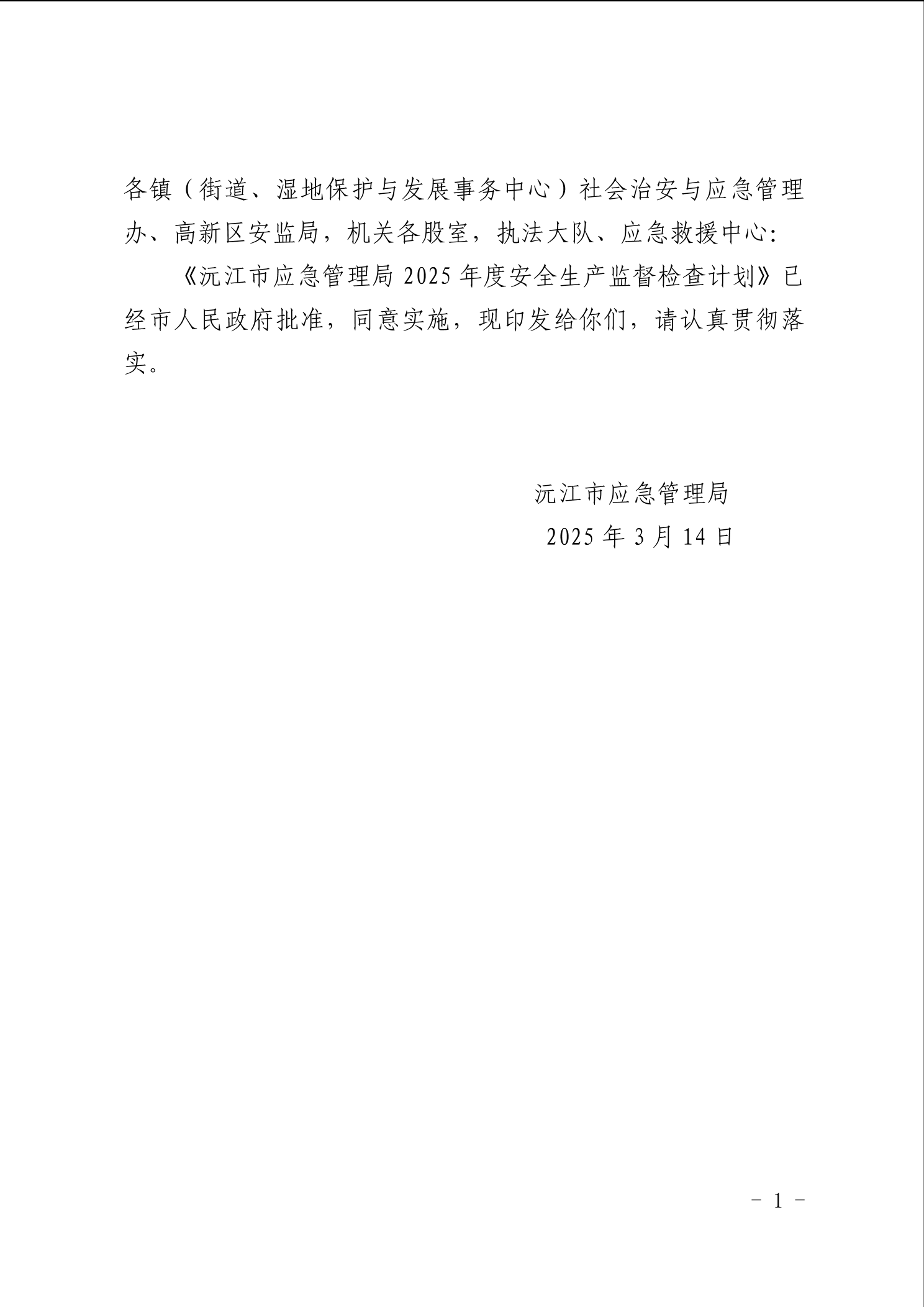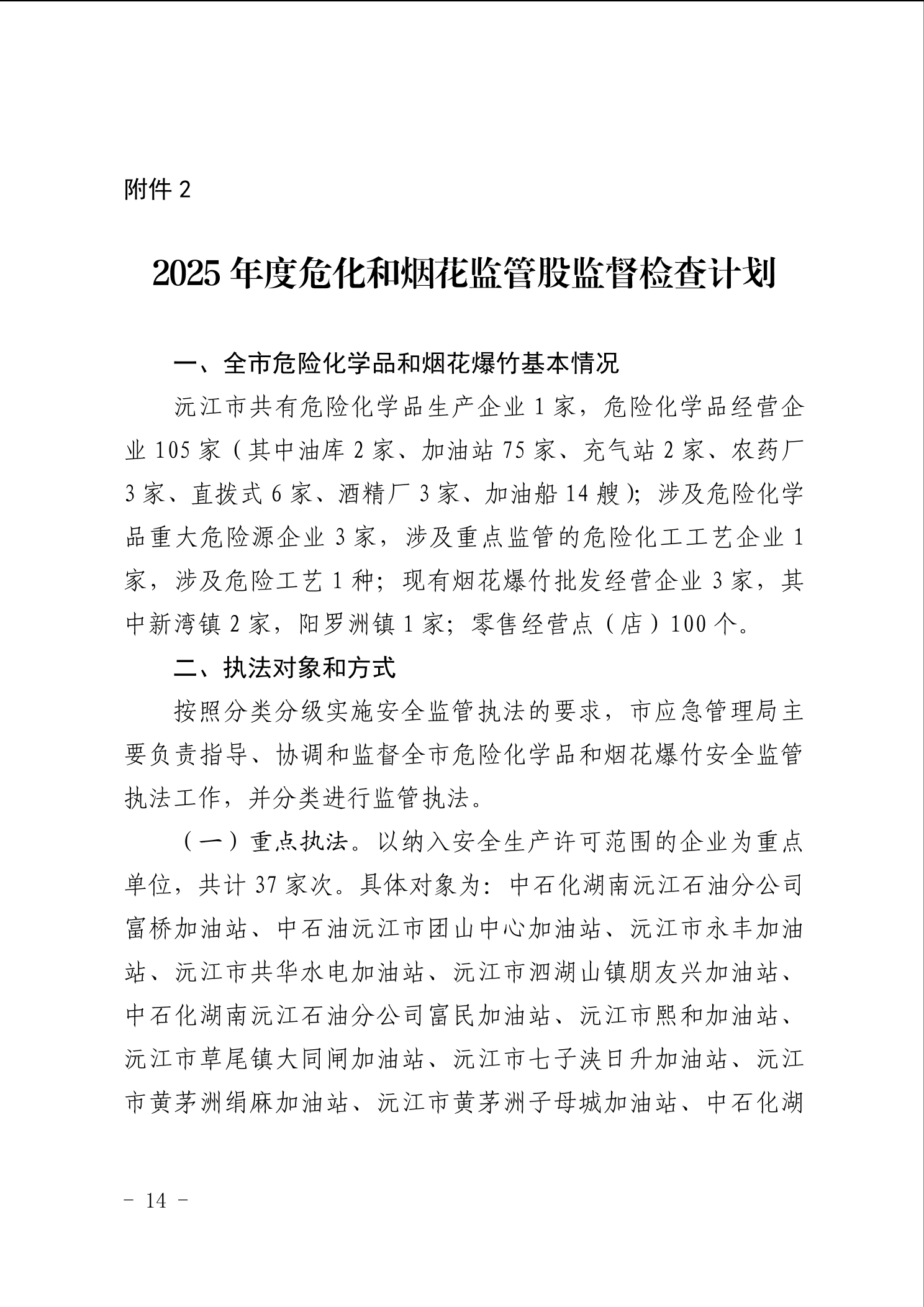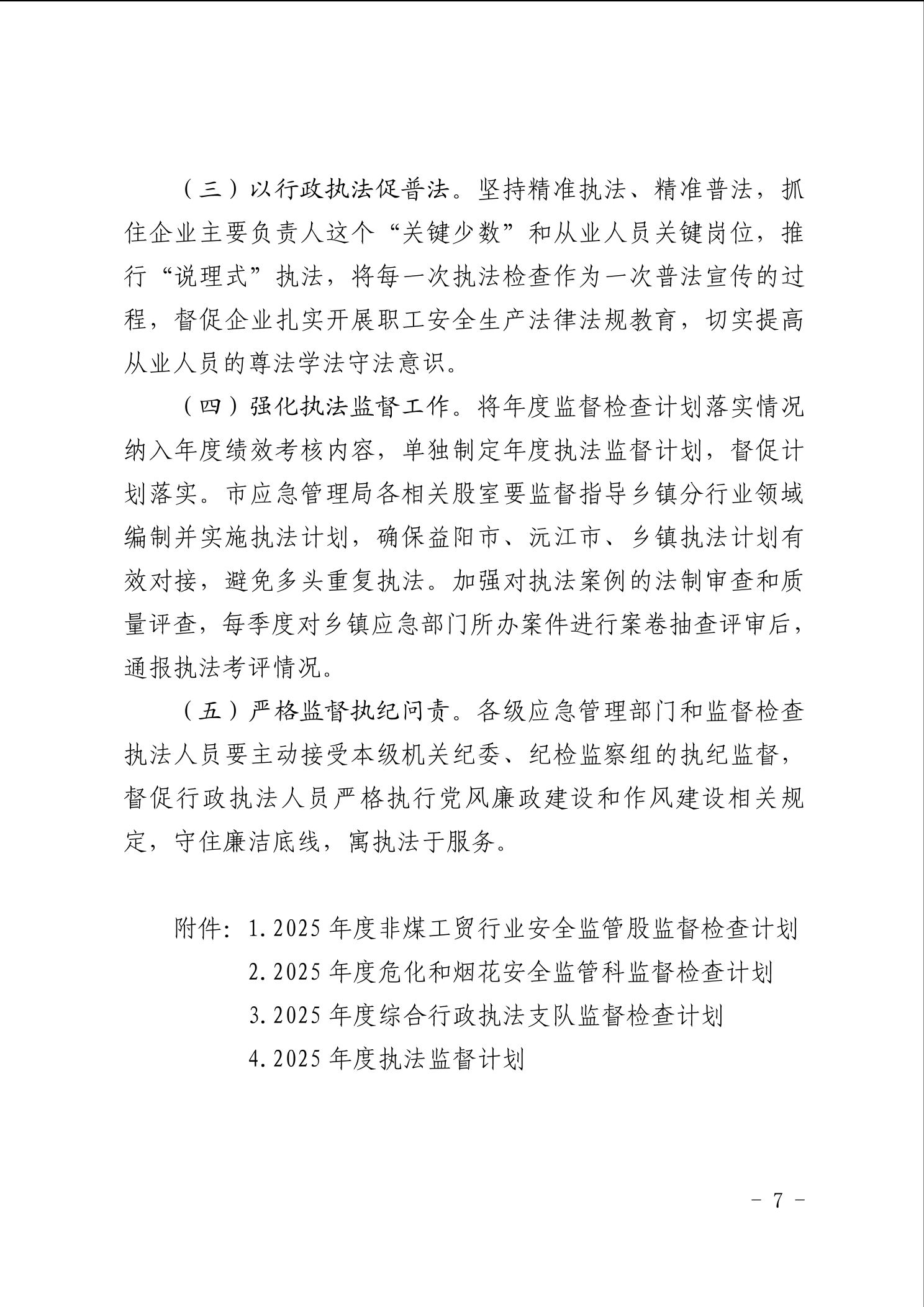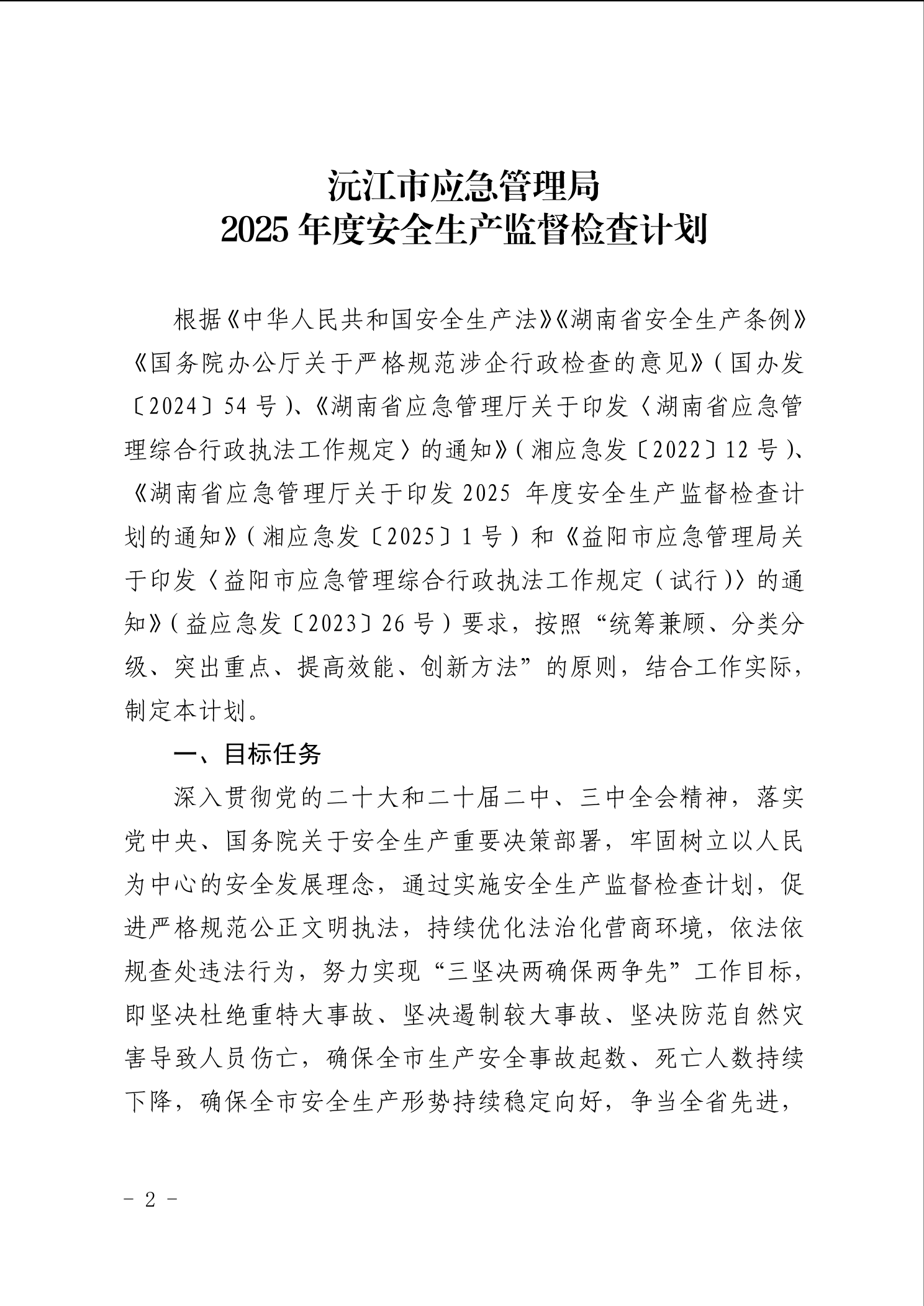 关于印发《沅江市应急管理局2025年度安全生产监督检查计划》的通知