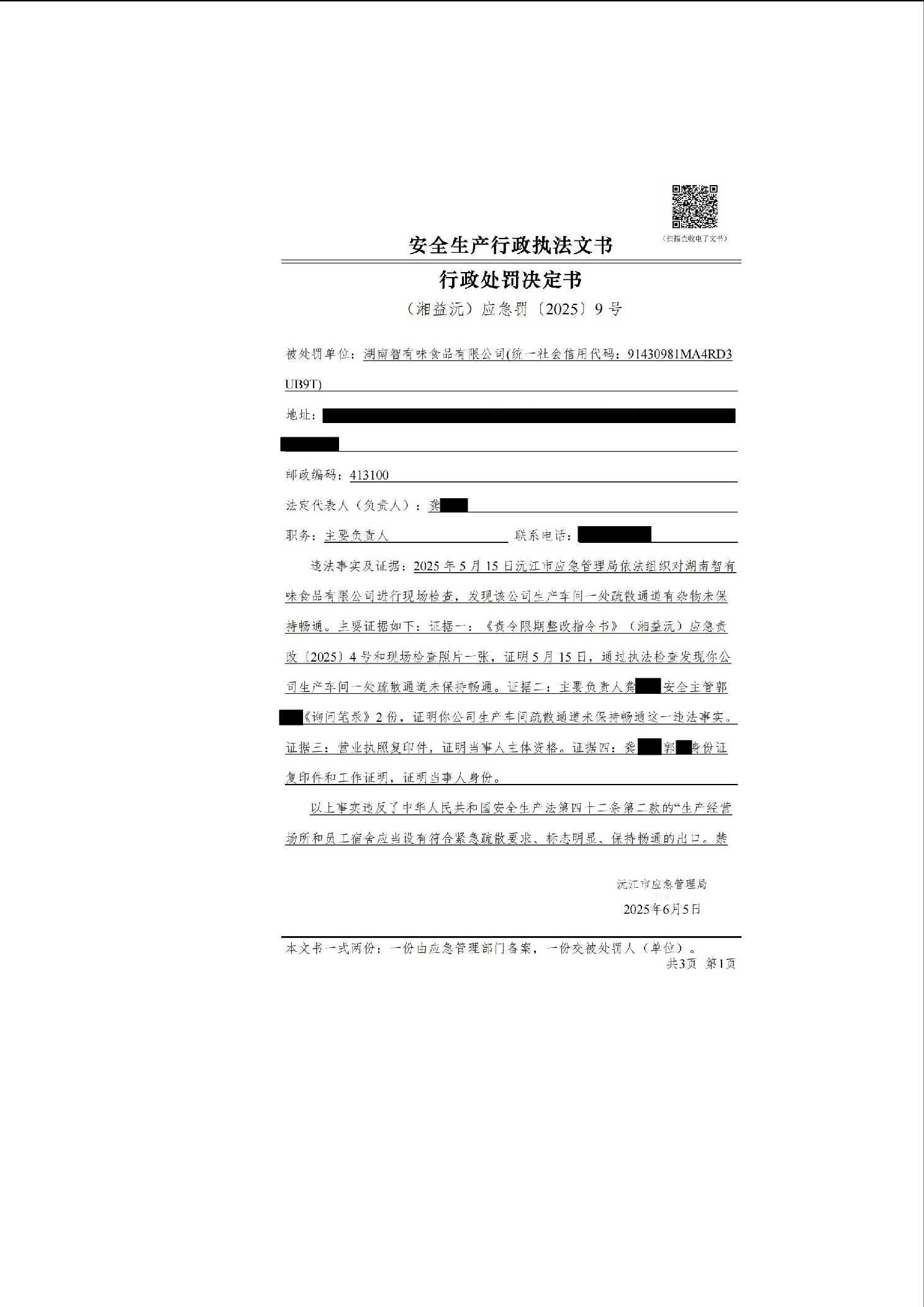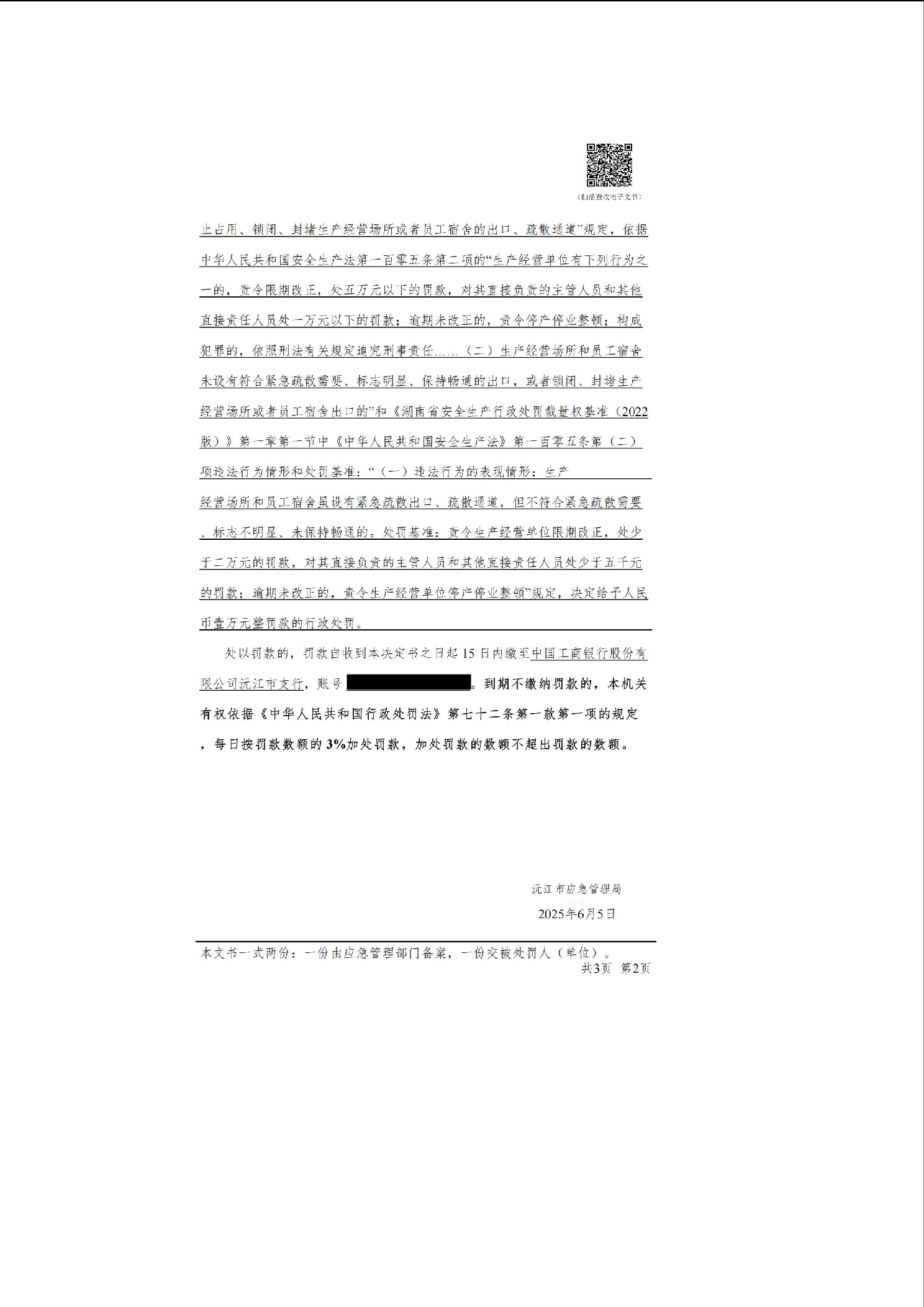 行政处罚决定书公示(湘益沅)应急罚〔2025〕9 号