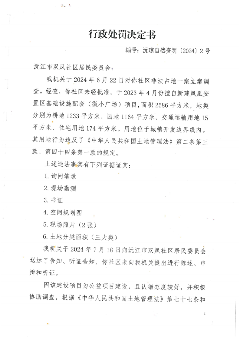 20240725沅琼自然资罚〔2024〕2号行政处罚决定书