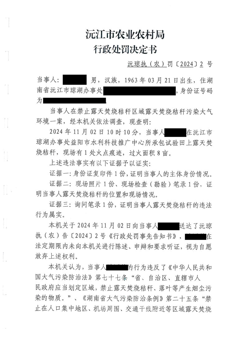 沅琼执(农)罚〔2024〕2号行政处罚决定书