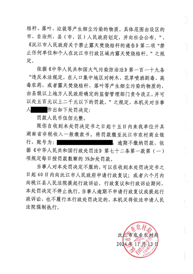 沅琼执(农)罚〔2024〕5号行政处罚决定书