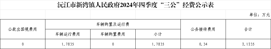沅江市新湾镇人民政府2024年四季度“三公”经费公示表
