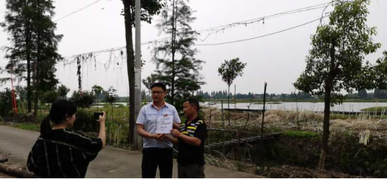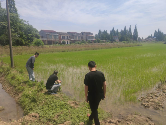 (三)为村民稻虾养殖重大风险防范提供保障,工作人员与保险公司对稻虾保险现场进行勘探工作。