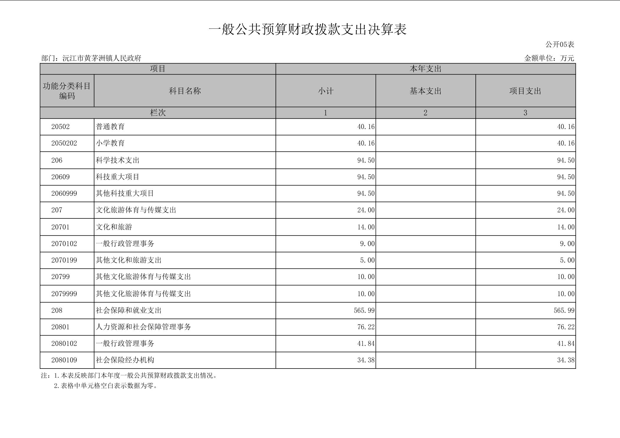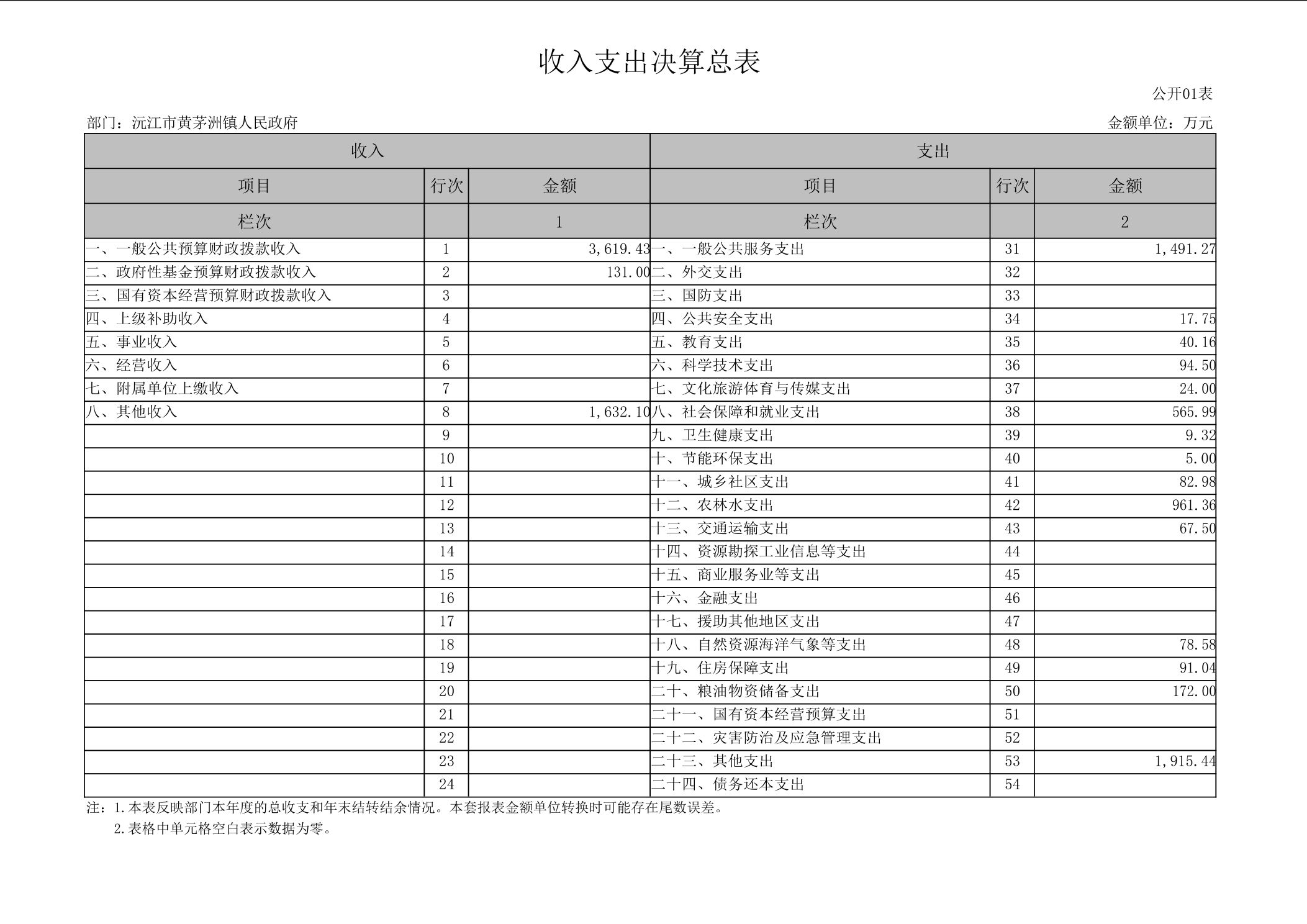2024年度沅江市黄茅洲镇人民政府 部门决算