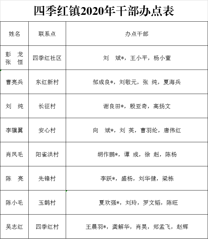 四季红镇2020年干部办点表