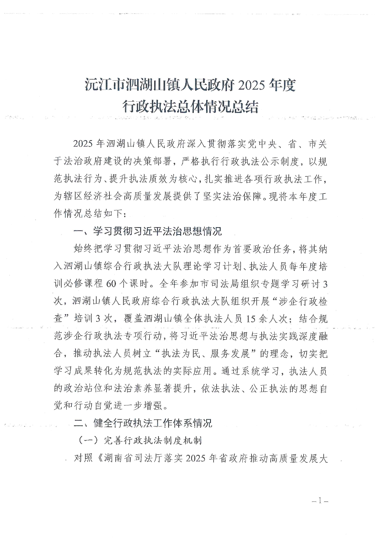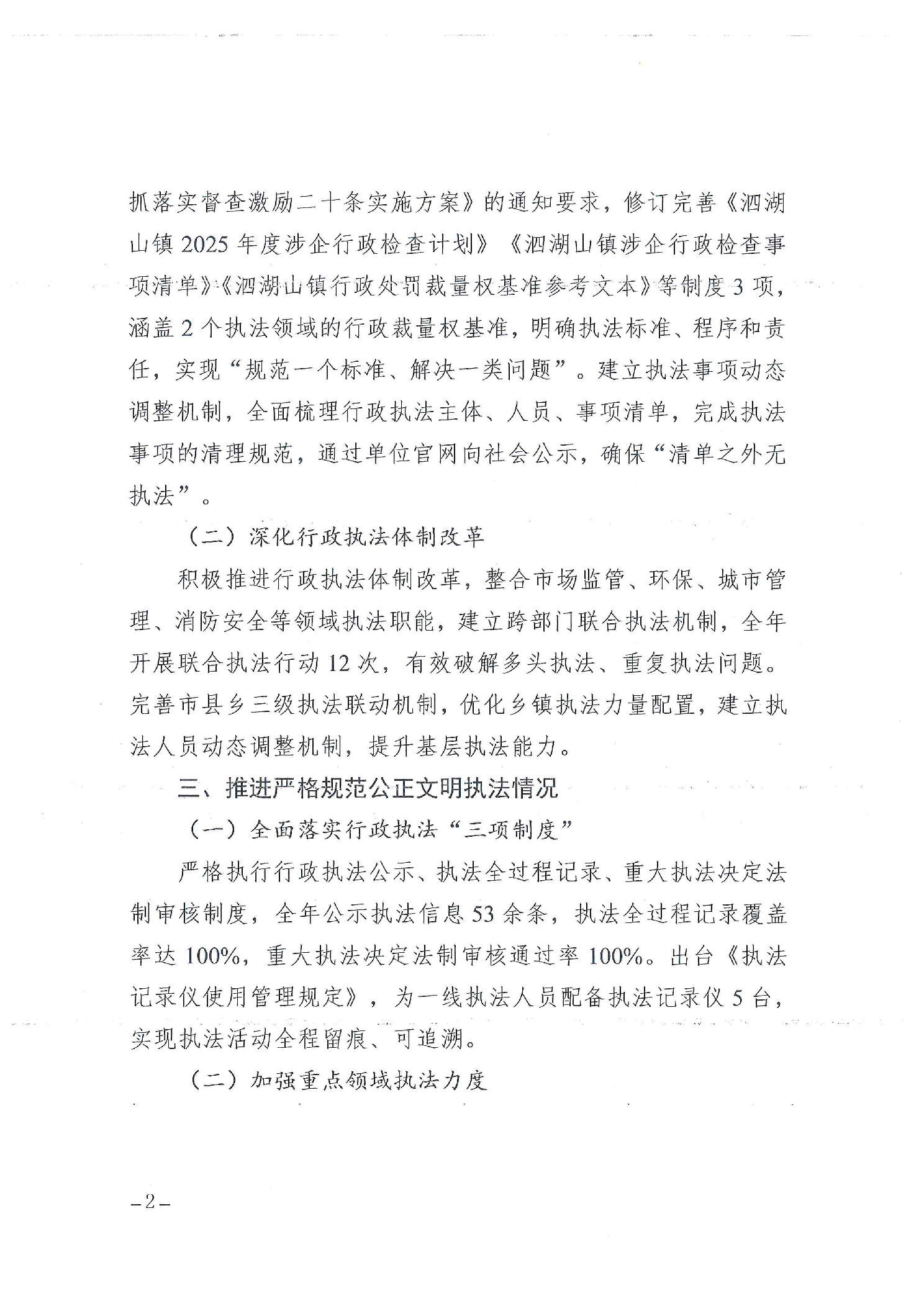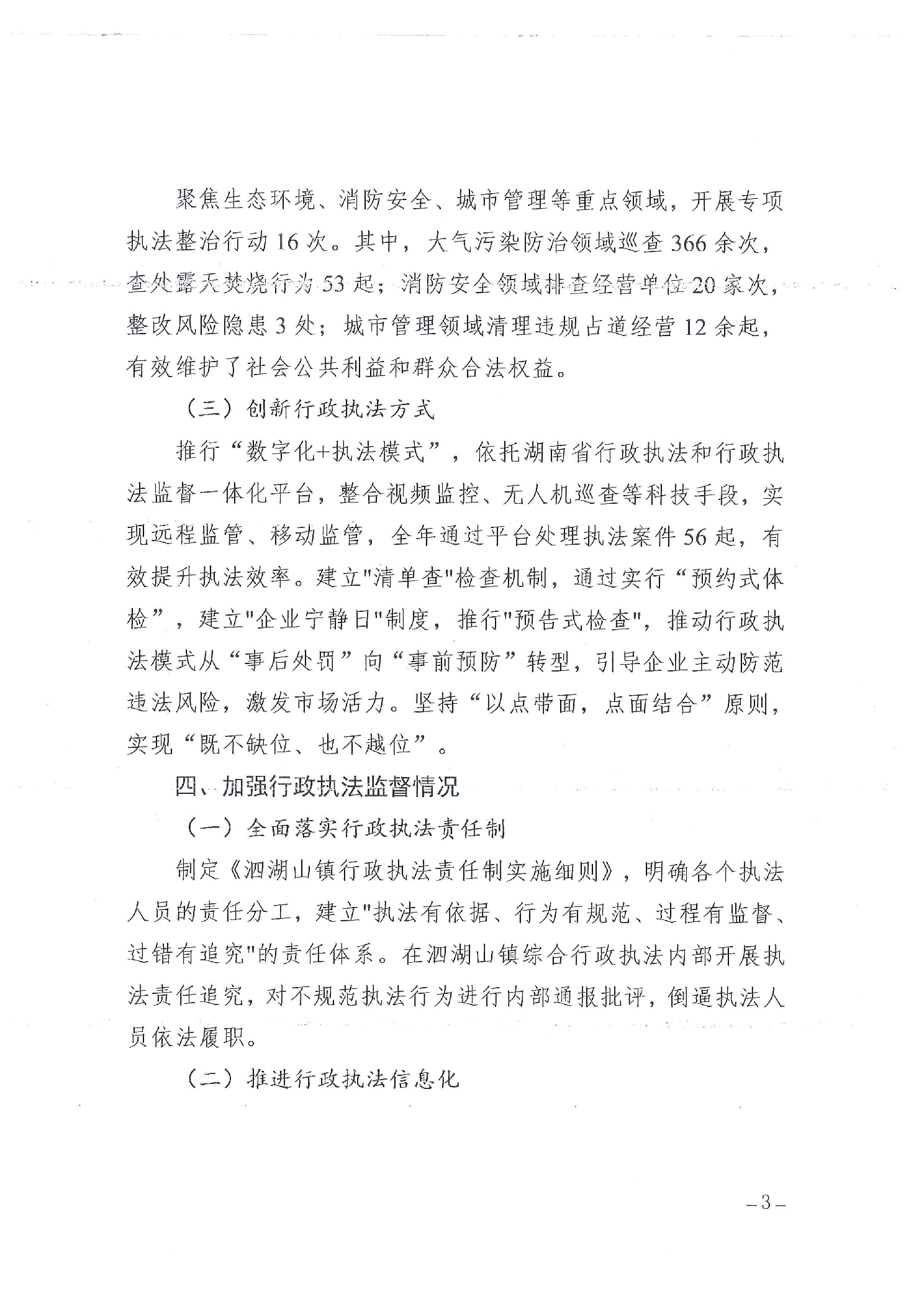 沅江市泗湖山镇人民政府2025年行政执法情况总结