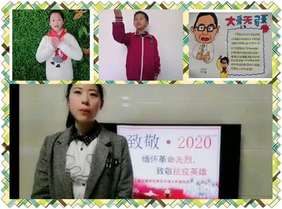 4月4日9时30分,沅江共华中心校、新湾中心小学、南嘴中心小学、莲花塘学校、玉潭学校的学生通过手抄报、速写、漫画等形式制作心目中的英雄卡。“手托炸药包用自己的身躯架起胜利桥梁的董存瑞”“无惧敌人忠诚于党的刘胡兰”“大火中逆风而行的消防员战士”“抗疫一线舍生忘死的刘智明”“坚守‘疫’线以身殉职的夏思思”,一张张画像,一个个故事,一段段文字,记录了数千学子的感恩之心、追念之情、奋进之意。“他是一位勇者,更是一位英雄,用自己的血肉之躯托起胜利的希望,我们应该珍惜今天幸福的生活,传承革命先烈的遗志,做社会主义事业的建设者和接班人”莲花塘学校1708班的陈宇轩,用细腻的笔触,用最深的感悟对心中的英雄表达深切的哀悼和崇高的敬意。
