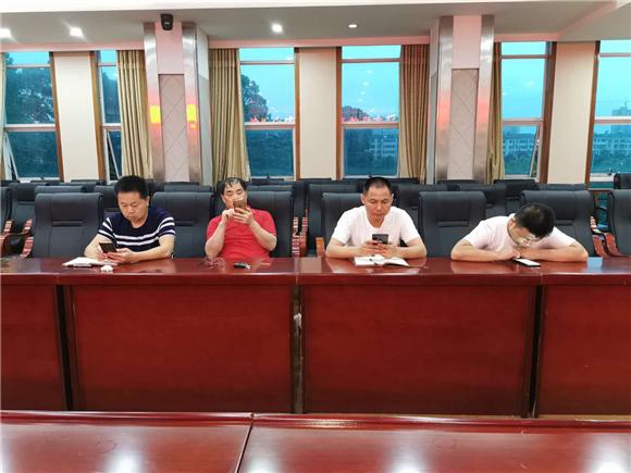 6月9日晚,沅江市机关事务服务中心工作人员齐集视频会议室,一人手捧着一部手机,聚精会神地把玩着。有的人紧皱眉头,有的人若有所思,有的人挠首抓耳.......党组书记、主任杨成梁不但不制止,也忘我地“玩”着手机。