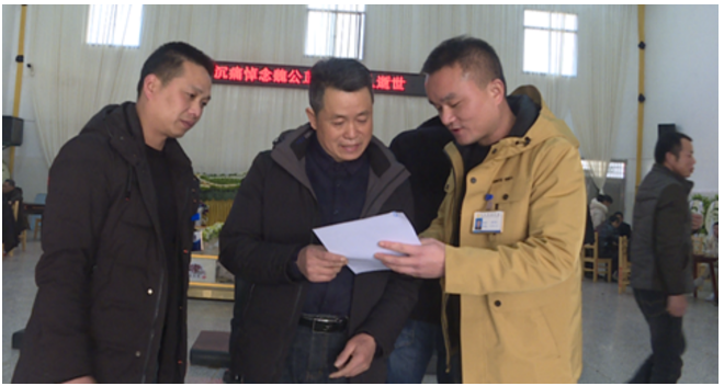 在沅江市殡仪馆内,今年59岁的魏立军正在处理父亲的后事,哀悼厅内没有吹手做道场、唱孝歌、搭台唱戏,也没有燃放烟花鞭炮。他的父亲于2020年12月31日晚离开了人世,本来他可以选择土葬安葬父亲,但在殡葬改革领导小组办公室工作人员的宣传下,毫不犹豫地选择火葬安葬父亲。"对于本次殡葬改革我积极支持,全力配合。我也是将近60岁了,我父亲90岁逝去是完全可以土葬的,因为他是2021年1月1日前死亡的,我选择火葬安葬。火葬第一个是节约土地,绿色环保;其次就是减少了丧葬费用,简化了治丧人员的一些手续,作为我的家属朋友亲人同事都积极支持,都表示自己的父母去世了,不需要政府来做工作,积极做好火葬火化"。魏立军说。
