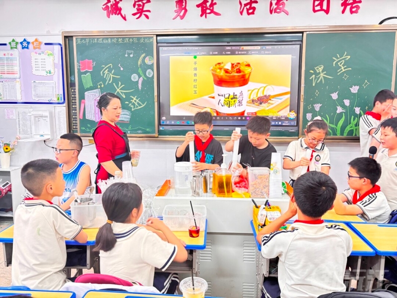 活动中,家长们精心准备,带着装满童年记忆的“百宝箱”走进教室,向孩子们介绍爸爸妈妈小时候的玩具和游戏,带领孩子们来到操场,亲身体验滚铁环、抽陀螺、丢手绢等传统游戏。此外,家长们还教孩子们制作各种美食:精致小巧的寿司、清爽可口的凉粉、香气四溢的柠檬茶、酸辣开胃的凉拌菜等,不仅满足了孩子们的味蕾,更让他们在动手实践中收获了快乐与成长。