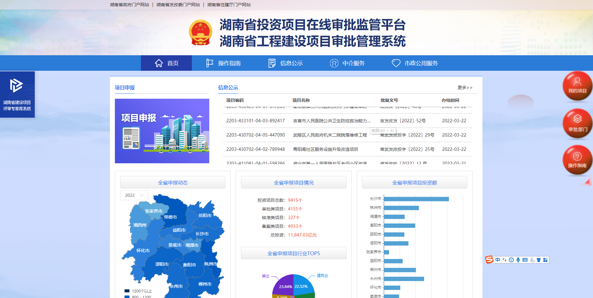 登录“湖南省投资项目在线审批监管平台(湖南省工程建设项目审批管理系统)”(http://www.hntzxm.gov.cn/home)进行工程建设项目申报 |