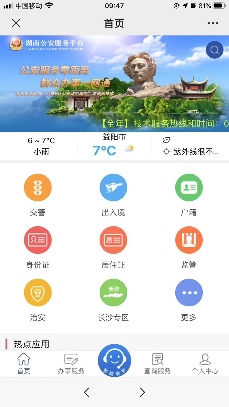 登录微信公众号(湖南公安服务平台)办理身份证遗失补领、电子证照查询等有关业务 |