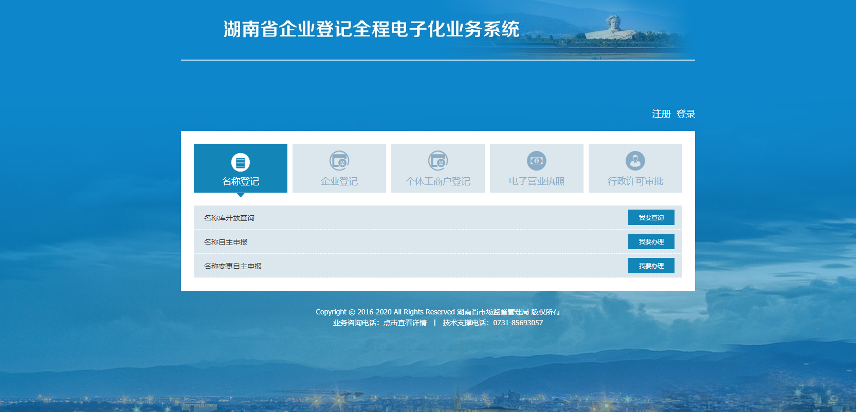 办理涉及内资企业主体设立、变更、注销类政务服务事项,登录“湖南省企业登记全程电子化系统”(http://222.240.225.75:8004/bsdt/) |