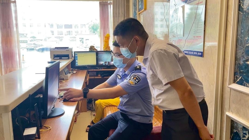 在市区的某集中隔离酒店,公安干警正坐在电脑面前,实时监控着隔离点的内部情况,电脑上的实时监控画面清晰又明亮,过往人员都能观察的一清二楚。