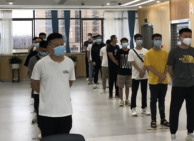 在市人民医院健康管理中心,应征青年们列队整齐,精神抖擞,严格按照医院疫情防控要求出示健康码、行程码、核酸检测结果,全程自觉佩戴口罩、保持“一米线”距离,体检现场秩序井然。