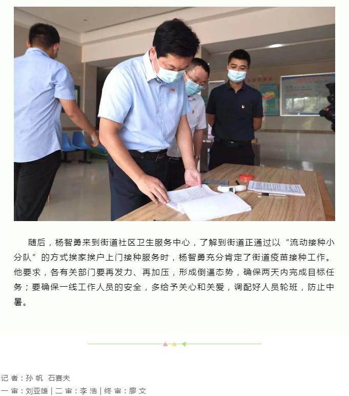 杨智勇:拿实招 出实效 确保疫苗接种有序“清零”