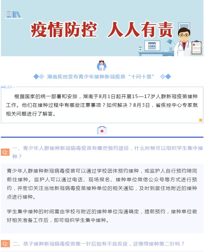 湖南疾控发布青少年接种新冠疫苗“十问十答”