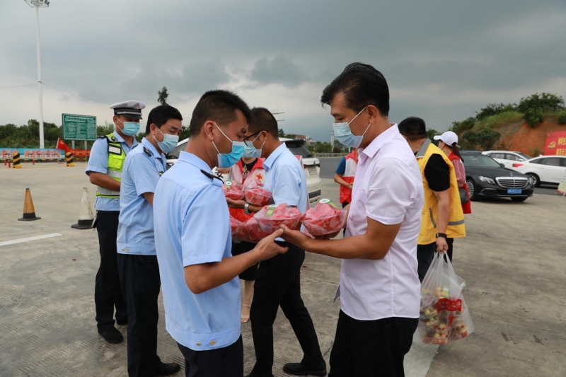 在沅江北高速、草尾互通高速以及保民大桥等设卡点,爱心企业工作人员和市红十字会的志愿者们将新鲜的水果送到了防疫一线工作人员手中,爱心企业工作人员考虑到一线工作人员工作的不方便,特意将所有的水果洗净并切装好,这样既方便食用,同时对防疫一线工作人员坚守岗位、守护家乡的辛勤付出表示感谢。