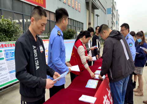 4月25日至5月1日是我国第19个《职业病防治法》宣传周,为深入贯彻落实上级文件要求,切实保障劳动者职业健康权。4月28日上午,沅江市卫健局牵头组织市总工会、民政局、医保局、人社局、卫监局、疾控中心等部门单位相关人员来到船舶制造产业园开展主题为“共创健康中国、共享职业健康”的宣传活动。