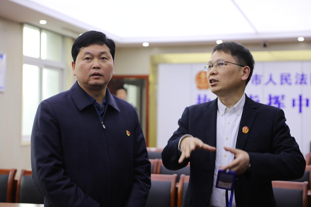 在市人民法院,杨智勇一行先后参观了该院诉讼服务中心、执行指挥中心、文化走廊、职工影院、道德讲堂、职工之家等地,通过实地查看、听取汇报,详细了解了立案程序、案件办理、队伍建设等情况。