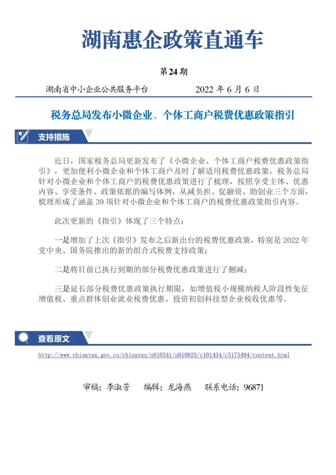 税务总局发布小微企业、个体工商户税费优惠政策指引