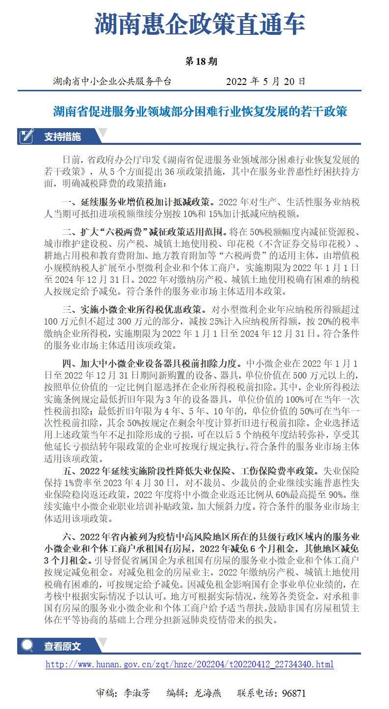 湖南省促进服务业领域部分困难行业恢复发展的若干政策