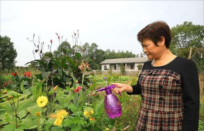 (南洞庭芦苇场永胜社区安置点王爱云正在浇花)
