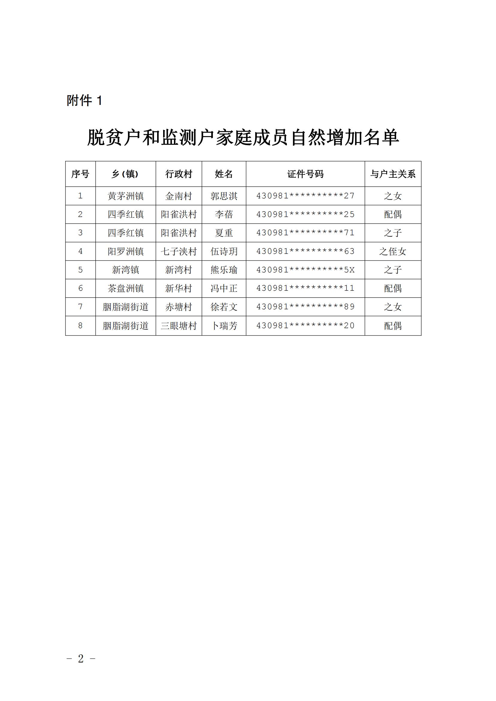关于2022年建档立卡脱贫户对象和监测户对象自然变更的公告(6月份)