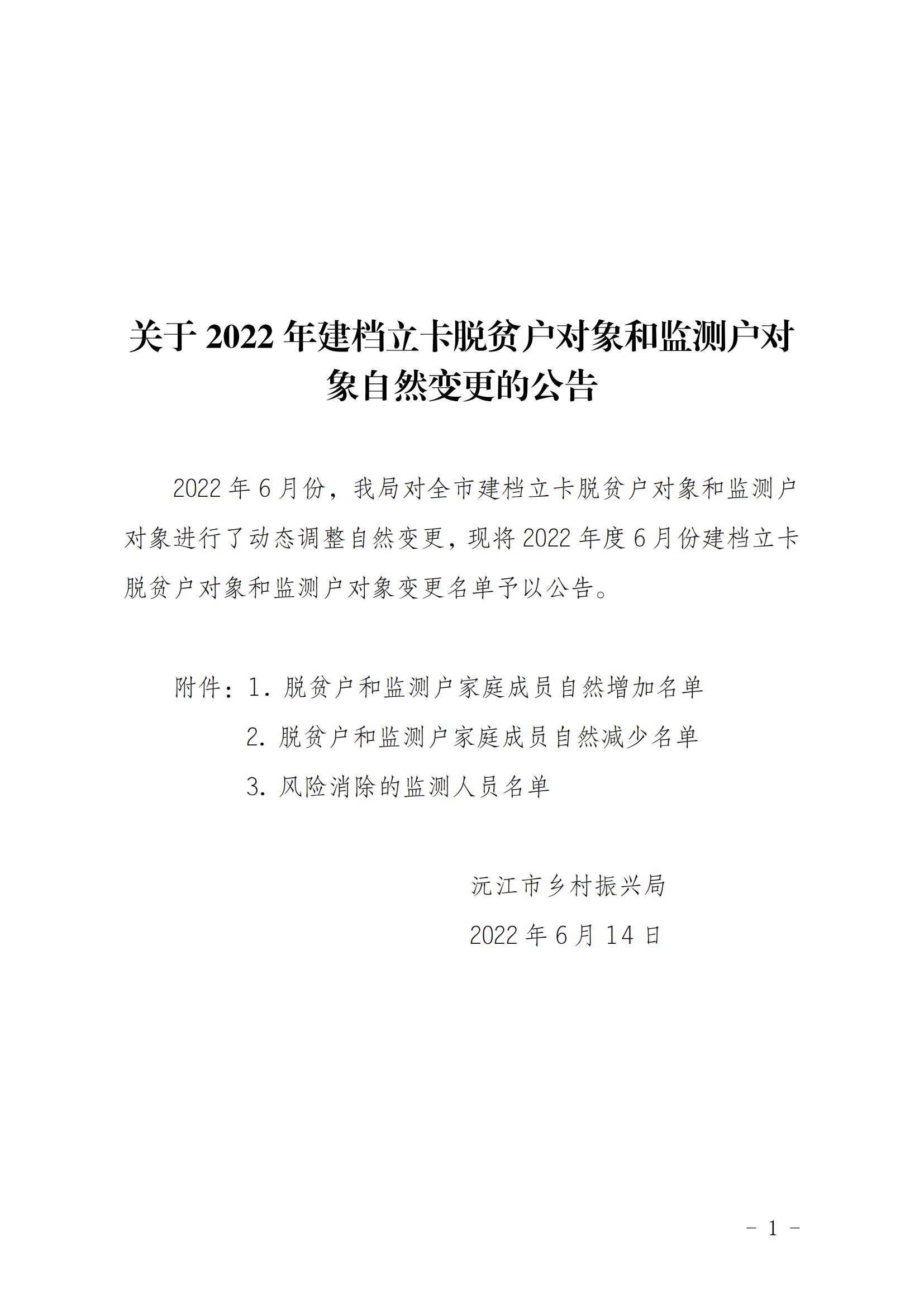 关于2022年建档立卡脱贫户对象和监测户对象自然变更的公告(6月份).pdf