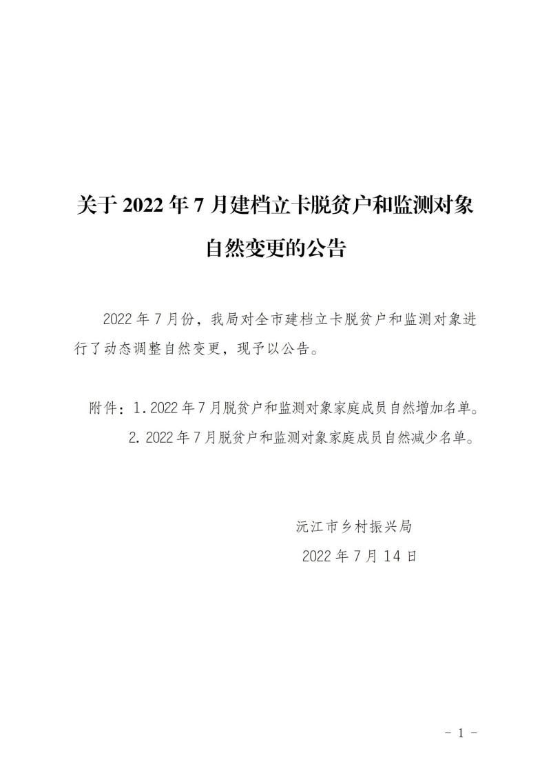 关于2022年建档立卡脱贫户对象和监测户对象自然变更的公告(7月份).pdf