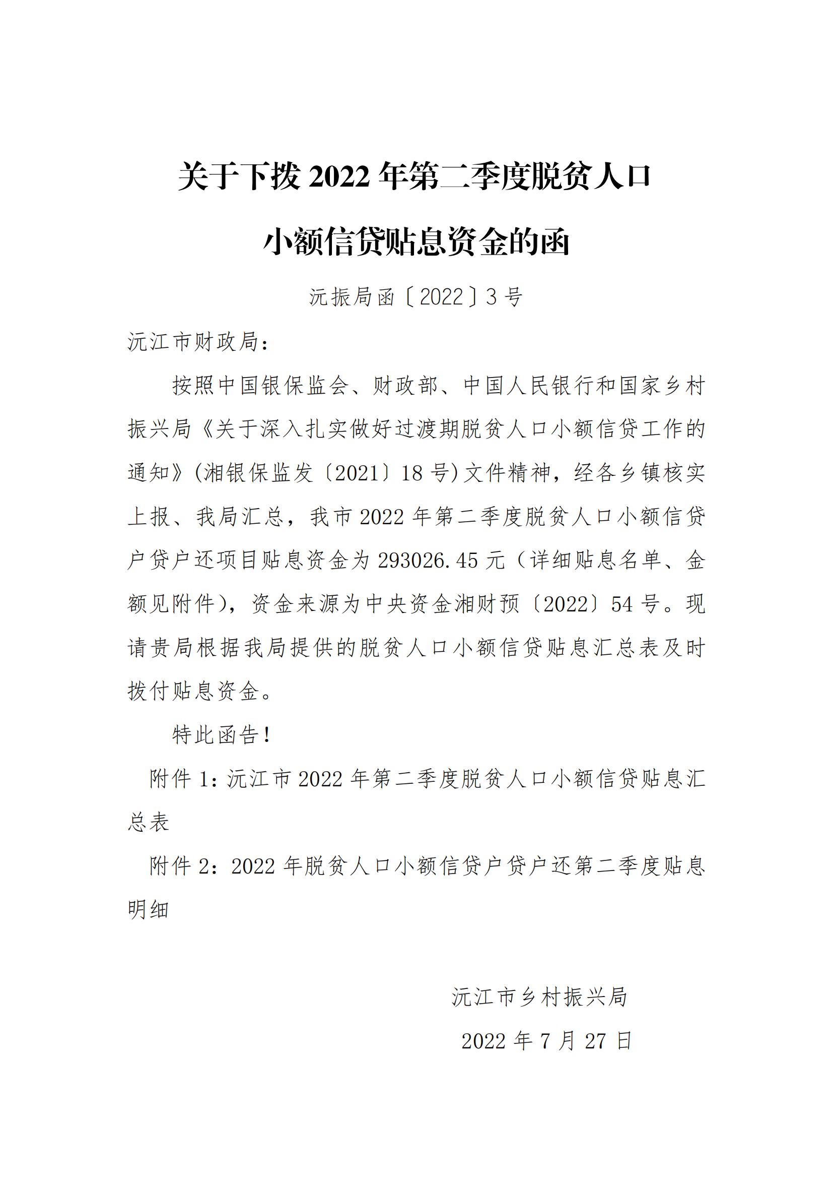 沅振局函〔2022〕3号 关于下拨2022年第二季度脱贫人口小额信贷贴息资金的函.pdf