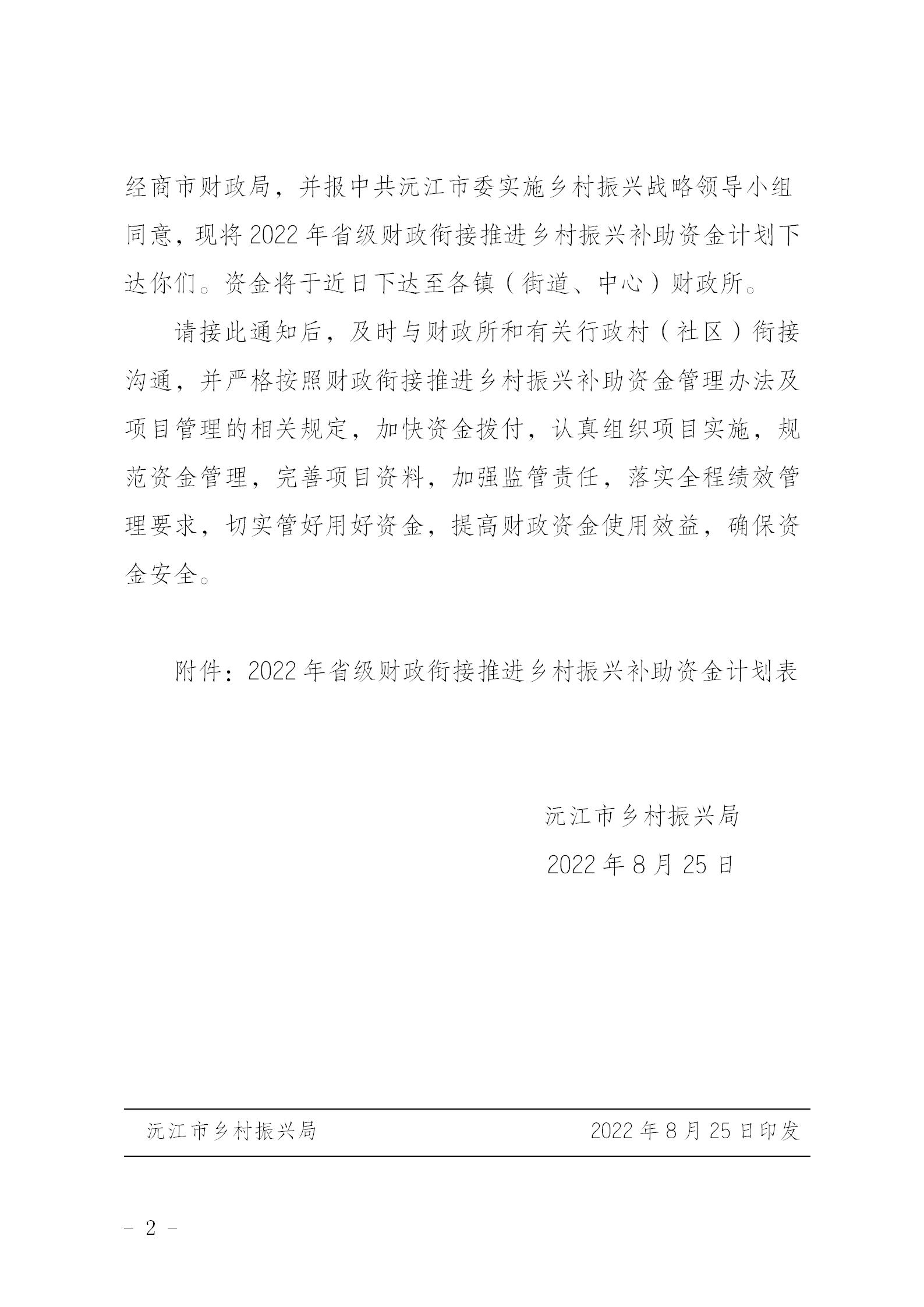 沅振发〔2022〕10号 关于下达2022年省级财政衔接推进乡村振兴补助资金计划的通知.pdf