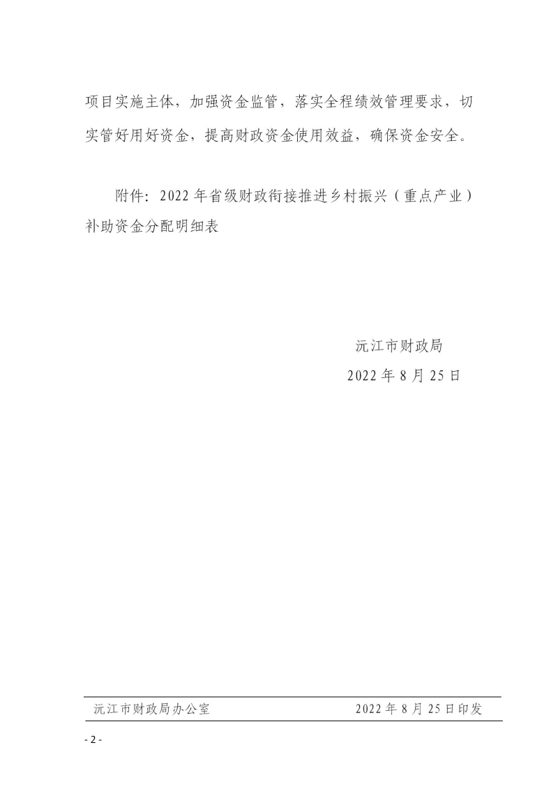 沅江市财政局关于下达2022年省级财政衔接推进乡村(重点产业)振兴补助资金的通知.pdf