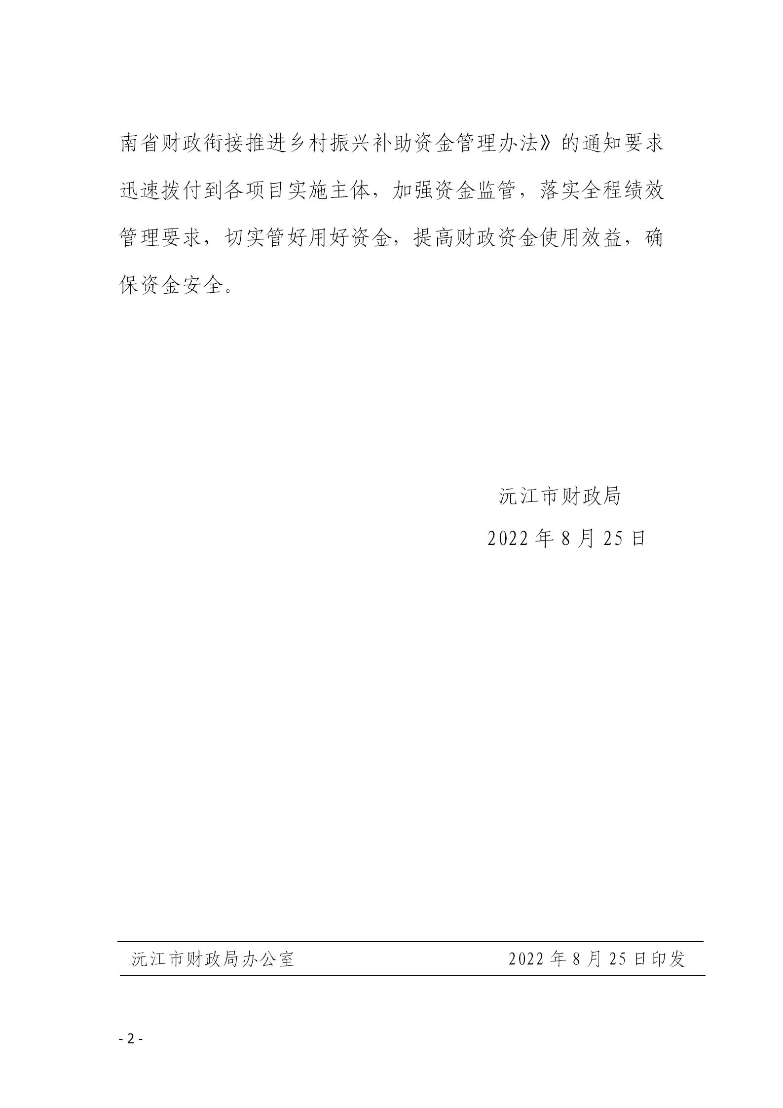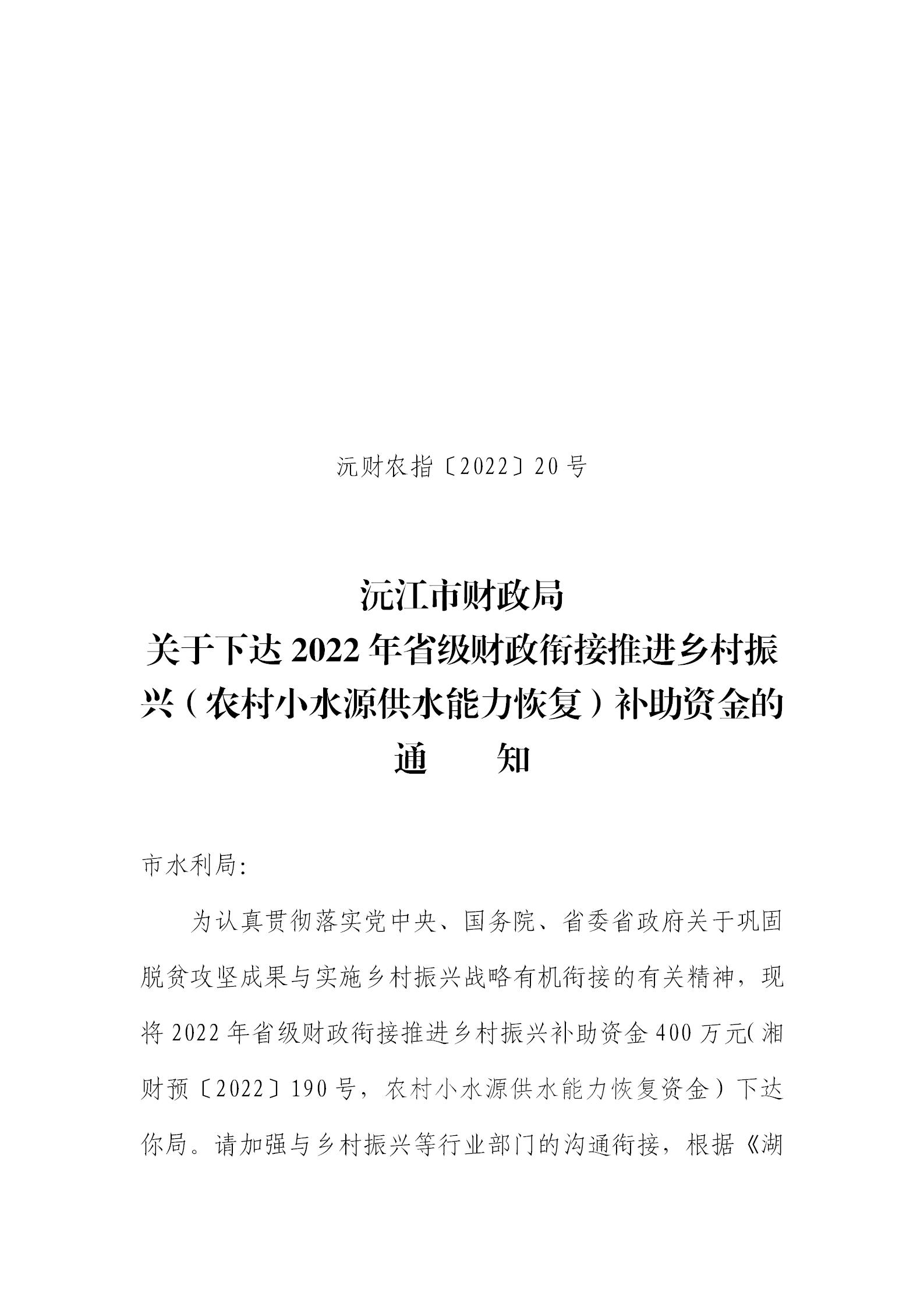 沅财农指〔2022〕20 号 沅江市财政局关于下达2022年省级财政衔接推进乡村振兴补助资金的通知.pdf