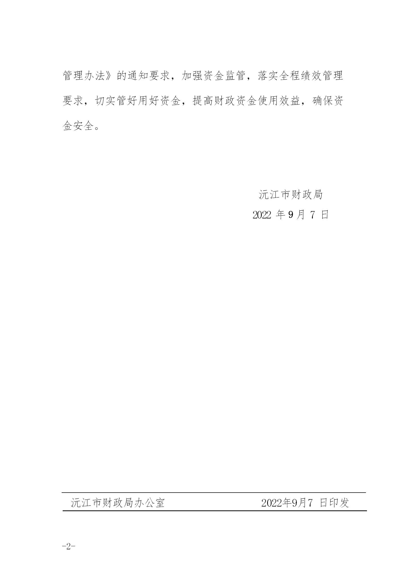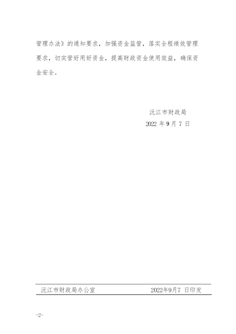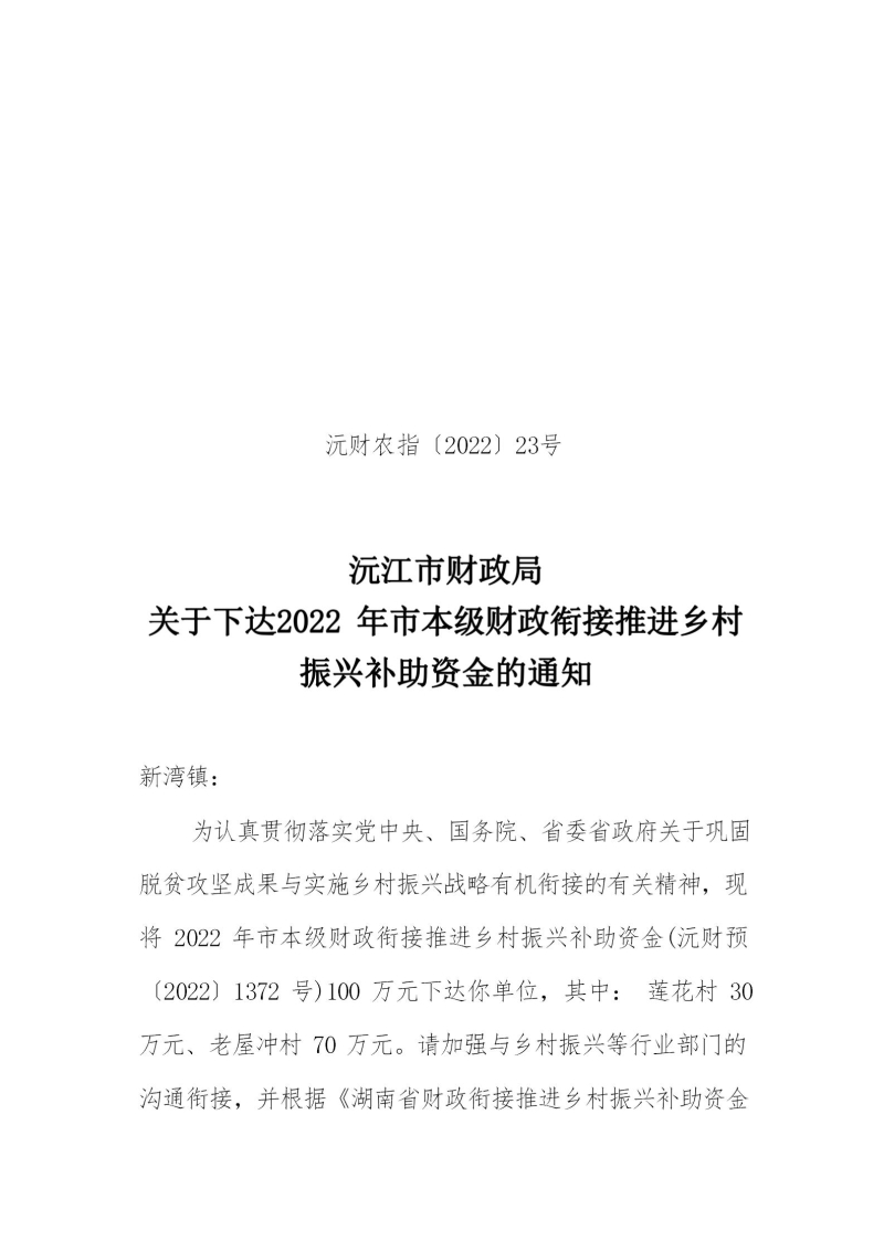 沅财农指〔2022〕23号 关于下达2022年市本级财政衔接推进乡村振兴补助资金的通知